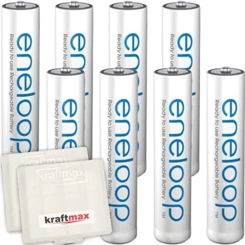 Auf Lager Versand durch Amazonkraftmax 8er Pack Panasonic Eneloop AAA/Micro Akkus - Neueste Generation - Hochleistungs Akku Batterien Akkuboxen V5