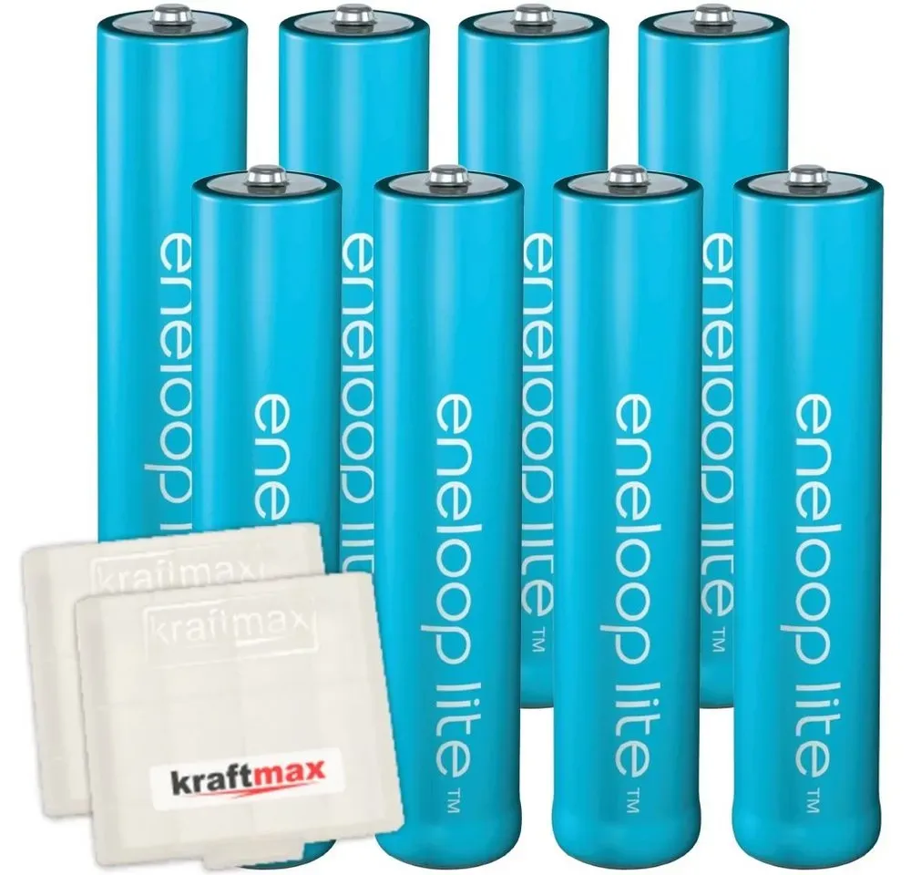 Auf Lager Versand durch Amazonkraftmax 8er-Pack Panasonic Eneloop LITE AAA Akkus - speziell für schnurlose Telefone/DECT Telefon - 8X Micro Akku Batterien Akkuboxen