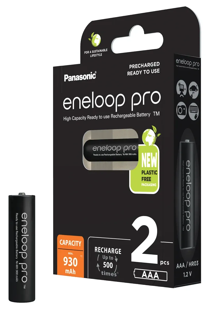 keine Angabe (Amazon Prime) Auf Lager Versand durch AmazonPanasonic eneloop pro AA/Mignon, 4er-Pack & eneloop pro, AAA/Micro, 4er-Pack, min. 930 mAh, 500 Ladezyklen Lebensdauer, geringer Selbstentladung, wiederaufladbarer Akkus in plastikfreier