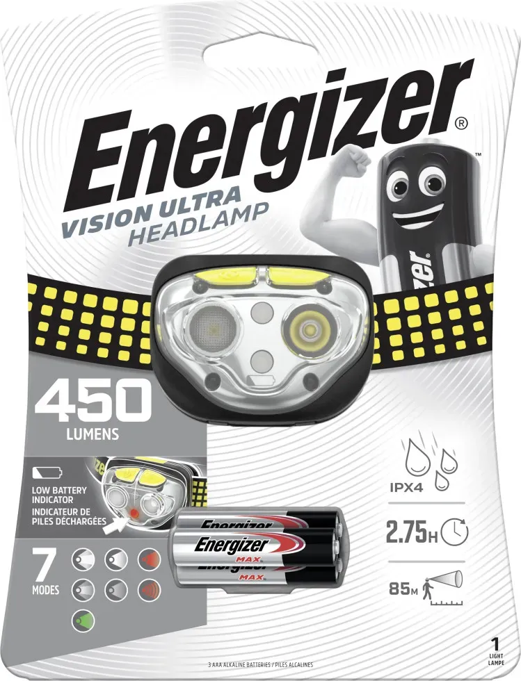Auf Lager Versand durch AmazonEnergizer Stirnlampe LED, Vision Ultra HD Superhelle Kopflampe für Camping, Outdoor und Wandern, Batterie Enthalten, 1 Stück (1er Pack)