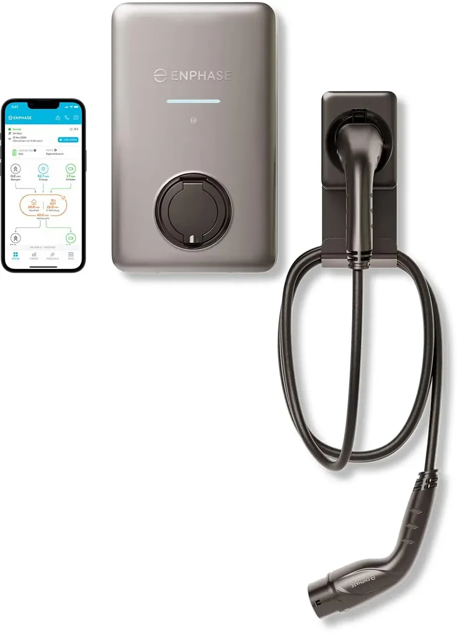 Zustand: Neu - Elektronik & Foto: Produkte mit Umwelt-Label - Enphase Energy - - EAN: 0199284918016 - Ladeleistung: bis zu 22 kW (dreiphasig) oder 7,4 kW (einphasig) Automatische Phasenumschaltung zwischen einphasiger und dreiphasiger, inkrementeller 1-A-Steuerung und schnelle Reaktion auf Änderungen in der Solarproduktion KI-gesteuertes Energiemanagement zur Optimierung der Tarifeinsparungen Integriertes zertifiziertes MID-Messgerät für Verbrauchsverfolgung und Rückerstattungen Hinweis Das 7,5 m lange Kabel und die Steckerhalterung sind separat erhältlich. . Überwachen, steuern und optimieren Sie das Aufladen mit der Enphase App. Integriertes WLAN und Bluetooth für verbesserte Konnektivität - Verkäufer: Enphase im amazon.de Marketplace ![]() ![]()