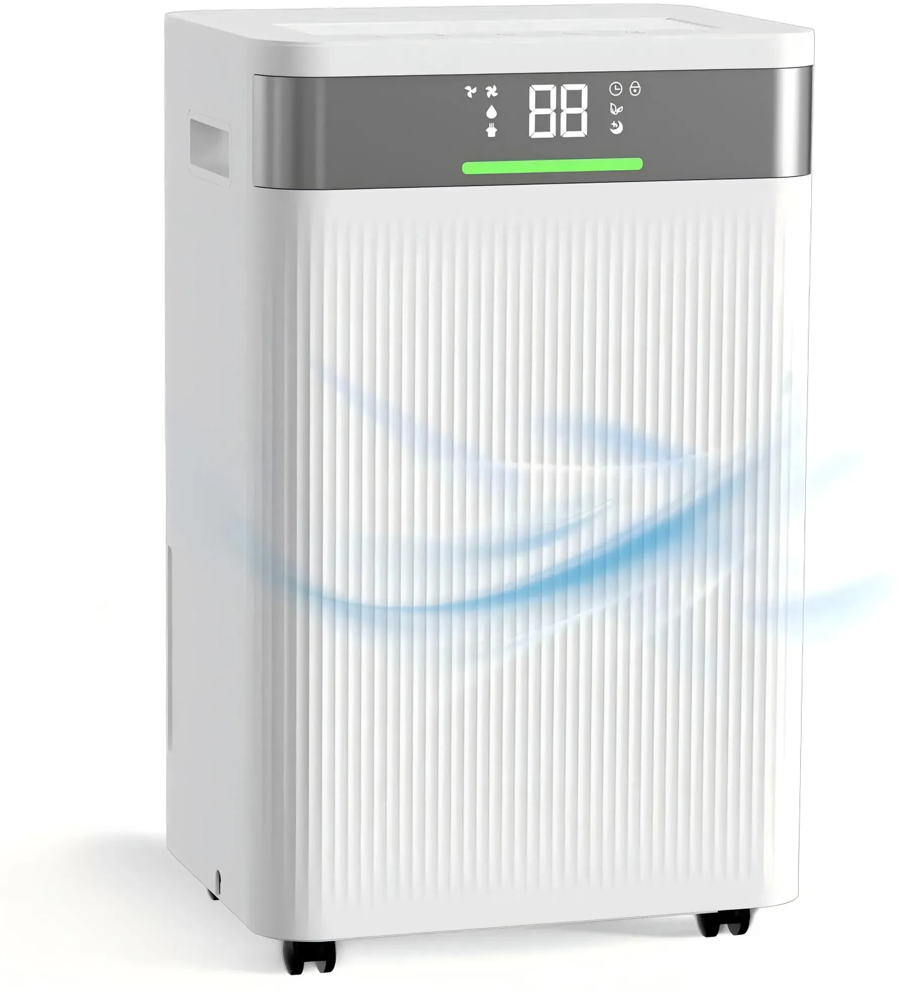 Kategorie: Luftentfeuchter - HAUSHOF - GTIN:0820909617563 - Hocheffiziente Luftentfeuchtung für ein angenehmes Wohngefühl: Dieser Luftentfeuchter entzieht bis zu 20 Liter pro Tag effektiv überschüssige Feuchtigkeit und sorgt so für frische Raumluft. Ideal für Räume von 20 30 m2, sorgt er für ein trockenes und angenehmes Raumklima in Schlafzimmern, Wohnzimmern und Büros Automatischer Feuchtigkeitssensor und Digitalanzeige Dieser 20 Liter Raumentfeuchter verfügt über eine Touch-Bedienung und ein LED-Display zur Einstellung von Lüftergeschwindigkeit und Luftfeuchtigkeit (30 80 %). Eine dreifarbige Anzeige zeigt die Luftfeuchtigkeit im Raum auf einen Blick an Einstellbare Luftfeuchtigkeit und vielseitige Modi: Mit drei Betriebsmodi Automatische Entfeuchtung, Dauerentfeuchtung zum Trocknen und Schlafmodus können Sie den Luftentfeuchter an jeden Bedarf anpassen. Der einstellbare Feuchtigkeitsbereich von 30 % bis 80 % macht ihn für verschiedene Umgebungen und saisonale Anforderungen geeignet Leiser Betrieb für eine ruhige Atmosphäre: Dank des geräuscharmen Designs läuft er leise und ist somit ideal für Schlafzimmer und Arbeitsräume. Genießen Sie trockene, komfortable Räume mit minimaler Beeinträchtigung Ihres Alltags Großer Wassertank mit zwei Entwässerungsoptionen: Ausgestattet mit einem geräumigen 4,5 L Wassertank unterstützt dieser Luftentfeuchter sowohl manuelle als auch kontinuierliche Entwässerung. Eine automatische Abschaltung mit Tank-Voll- und FL-Benachrichtigung ... Ein beliebter Luftentfeuchter mit Wäschesmodus, Feuchtigkeitssensor und Timer, der effektiv gegen Schimmel und Feuchtigkeit vorgeht. ![]() ![]() Pro Breeze Luftentfeuchter 20L in 24h Entfeuchtungsleistung - Luftentfeuchter elektrisch mit Wäschemodus, Feuchtigkeitssensor, Luftfilter, Timer - Gegen Schimmel - Entfeuchter elektrisch für bis 35m2