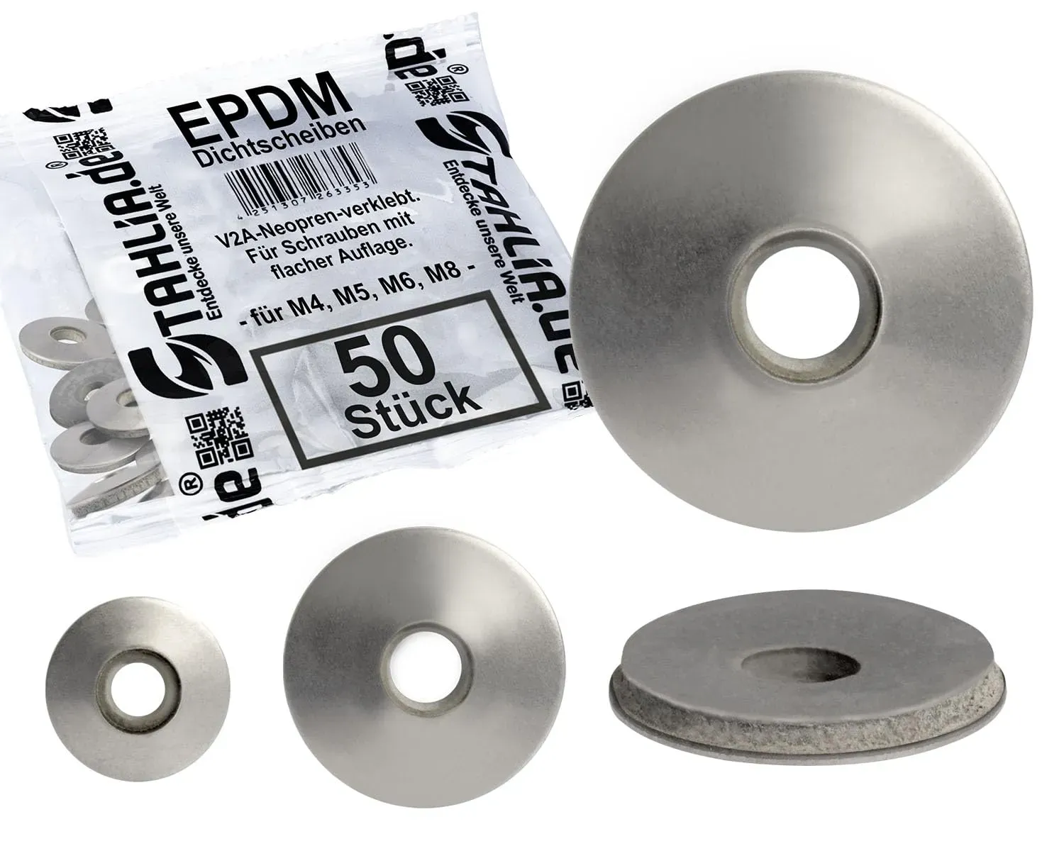 Kategorie: Baumaterial - Faston - GTIN:5903472081100 - Sie erhalten 10 Stück Dichtscheibe 8,4x29mm : Aus rostfreiem Edelstahl A2 V2A mit grauem EPDM-Dichtmaterial, perfekt für anspruchsvolle Anwendungen in feuchten Umgebungen und im Außenbereich. Zuverlässiger Schutz: Die EPDM-Dichtung bietet einen hervorragenden Schutz vor dem Eindringen oder Austreten von Flüssigkeiten, schützt vor Korrosion und Vibrationen und sorgt für eine dichte Verbindung bei jeder Montage. Schutz und Optik: Die Dichtscheiben verhindern Schäden durch Schraubenköpfe und sorgen für eine saubere und ästhetische Verbindung. Ideal in der Elektrotechnik, im Maschinen- und Anlagenbau sowie im Bauwesen, wo eine wasserdichte Abdichtung entscheidend ist. Robustes Material: Rostfreier Edelstahl A2 V2A zeichnet sich durch hohe Witterungsbeständigkeit und Langlebigkeit aus, was diese Dichtscheiben für den Einsatz in anspruchsvollen Umgebungen prädestiniert. Passgenaue Maße: Durchmesser Innen: 8.4 mm; Durchmesser Außen: 29 mm; Dichtungsstärke: 2 mm; Stahlstärke A2: 0.8 mm. Die Dichtscheiben sind in verschiedenen Größen verfügbar, um die optimale Abdichtung für jede Anwendung zu gewährleisten. - 10,49 Euro bei Amazon Marketplace Automotive - gefunden von billiger.de Dieses Paket mit 50 EPDM Dichtscheiben aus Edelstahl für 15,02 Euro ist ideal für größere Projekte, die eine langlebige und wasserdichte Abdichtung benötigen. ![]() ![]() Stahlia EPDM Dichtscheiben M8 Unterlegscheiben Gummidichtung rund (50 Stück) Edelstahl V2A Distanzscheiben Dichtscheiben für Schrauben Dichtung
