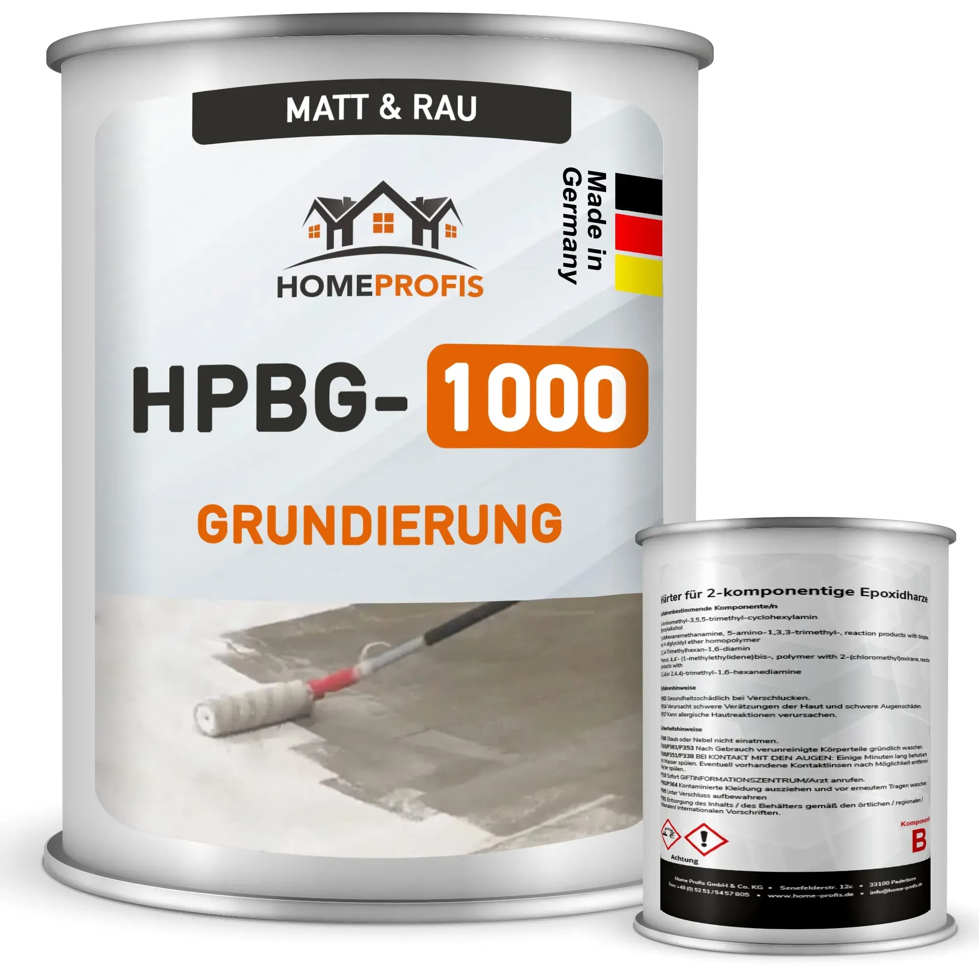 Kategorie: Farben & Lacke - Plid - GTIN:4066056008199 - Plid 2K Epoxy-Haftvermittler 750 ml [Basis + Härter] Transparente 2K-Epoxidharz-Grundierung für Beton- und Garagenböden Perfekt als Epoxidharz Primer & Bodenbeschichtung, Werkstatt, Keller, Estrich Basis 580 ml + Härter 170 ml, im richtigen Verhältnis abgefüllt. Komplett mischen, mindestens 3 Minuten rühren, bis Emulsion entsteht. Ergiebig und wirtschaftlich Verbrauch 0,15 0,2 l/m2 für ca. 5 m2. Dünn auftragen mit Pinsel oder Walze für perfekte Bodenbeschichtung. Schnelle Trocknung spart Zeit staubtrocken nach ca. 4 h, begehbar nach ca. 12 h, überstreichbar nach 12 48 h für zügige Weiterbeschichtung. Hohe Haftfestigkeit sorgt für lange Haltbarkeit der Bodenbeschichtung, reduziert Abblättern und sorgt für eine widerstandsfähige Oberfläche. - 32,90 Euro bei Amazon Marketplace Home Improvement - gefunden von billiger.de Die Home Profis HPBG-1000 2K Epoxidharz Grundierung ist eine wasserdichte Option für Innen- und Außenbereiche, ausreichend für bis zu 5m². ![]() ![]() Home Profis HPBG-1000 2K Epoxidharz Grundierung für Innen & Außen (bis 5m2) Wasserdichter Sperrgrund Haftvermittler Tiefengrund Primer für Beton Estrich Keller Garage Balkon Terrasse
