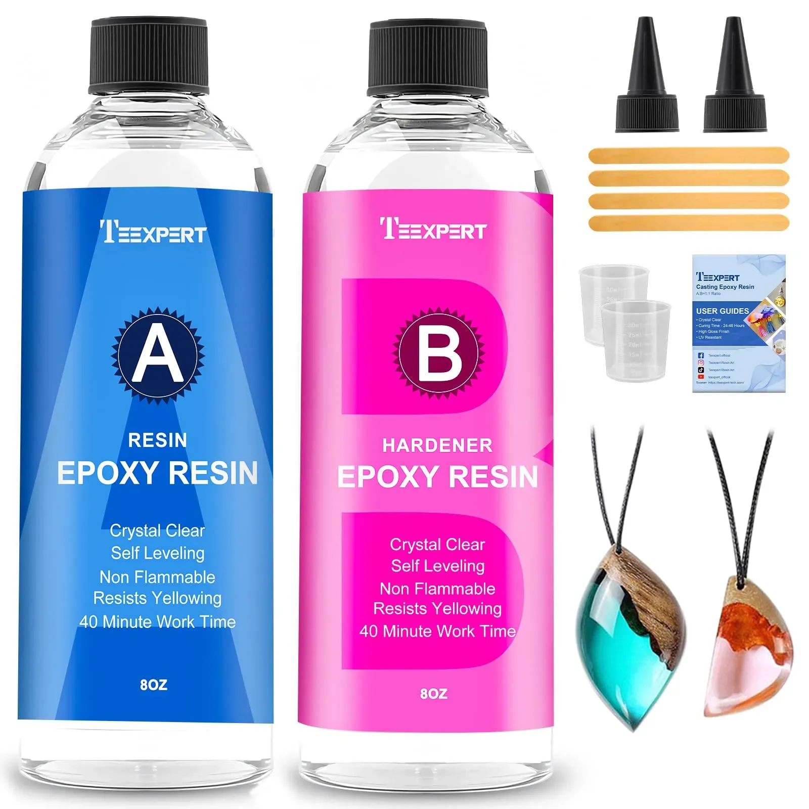 Auf Lager Versand durch AmazonTeexpert Epoxidharz mit Härter, 16OZ/474ml Hochglanz Epoxidharz Set, Blasenfreies Beschichtungs- und Gießharz für DIY-Kunst, Schmuck, Untersetzer, Weihnachtsdekorationen, Tischplatten, Formen, Holz