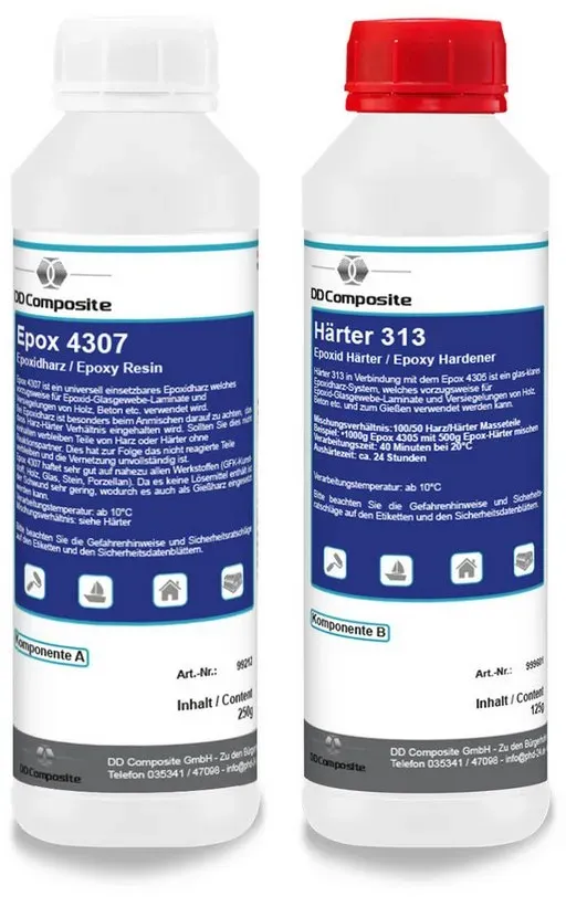 lieferbar-in 2-3 Werktagen bei dirDD Composite Epoxidharz 250g Epox 4307 + 125g Härter 313 weiß