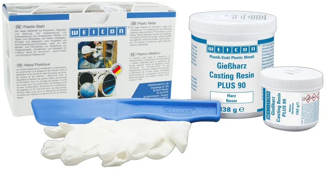 Messtechnik und Werkstattbedarf Verbrauchsmaterial Kleber 2-Komp. Kleber Handwerkzeuge - EAN:4024596059880 - aluminiumgefülltes Epoxidharz-System für Reparatur und Formgebung pastös aluminiumgefüllt nicht korrodierendWEICON F ist speziell für Anwendungen an Teilen aus Aluminium, dessen Legierungen, Magnesium und anderen Leichtmetallen geeignet. WEICON F kann für kostengünstige Reparaturen aller Art, zum Ausfüllen von Lunkerstellen an Leichtmetallguss und zur Rekonstruktion von Teilen verwendet werden. Das Epoxidharz-System kann im Werkzeugbau, im Modell- und Formenbau sowie in vielen weiteren Bereichen der Industrie zum Einsatz kommen. - gefunden von Kelkoo Das WEST SYSTEM Epoxidharz Handy-Reparatur-Pack ist ein spezialisiertes Set für präzise Reparaturen an kleineren Objekten. ![]() ![]()