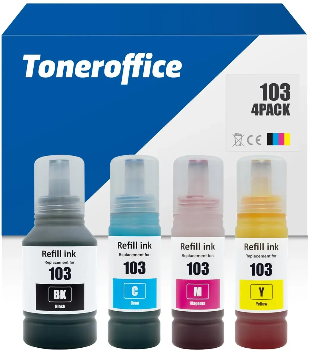 Auf Lager Versand durch AmazonLCL 103 Tintenflasche Kompatibel mit EPSON EcoTank L1110? L1210 L1250 L3100 L3101 L3110 L3111 L3150 L3151? L3156 L3160 L3210 L3211 L3250 L3251 L3256 L3260 L3266 (4 Packs, Schwarz Cyan Gelb Magenta)