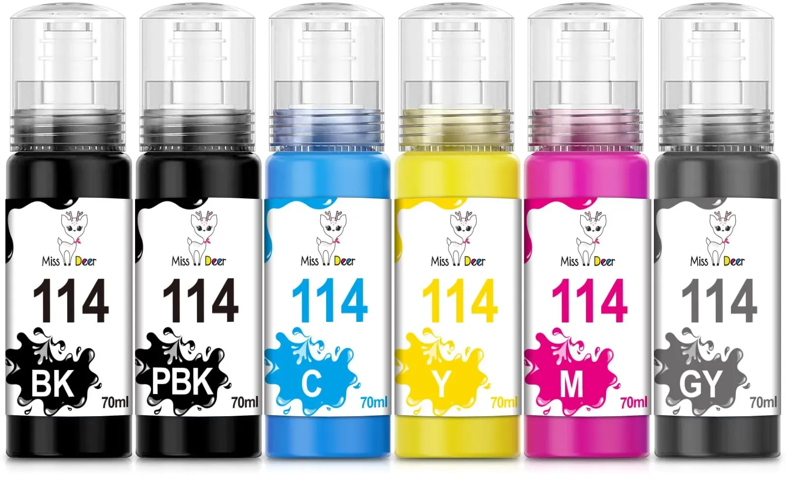 Zustand: Neu - Top Brands Office Printing - Epson - C13T07B240 - EAN: 8715946687308 - EXTREM KOSTENGÜNSTIGES DRUCKEN - Mit nur einem Satz Tintenflaschen bis zu 2.300 hochwertige Fotos drucken TINTENSERIE MIT 6 FARBEN FÜR BLEIBENDE ERINNERUNGEN - Mit der Epson Claria Premium Tinten für EcoTank drucken Sie hochwertige und langlebige Fotos bis DIN A4 sowie herausragende Schwarzweiß-Fotos mit der grauen Fototinte. SCHWARZE PIGMENTTINTE - Die schwarze Pigmenttinte eignet sich ideal zum Drucken von gestochen scharfem Text auf Normalpapier OPTIMIERT FÜR EPSON-DRUCKER - Mit Original-Tinten von Epson drucken Sie problemlos und zuverlässig und erhalten die besten Ergebnisse mit Ihrem EcoTank SPEZIELL ENTWICKELTE, FLASCHEN - Die Flaschen mit Schlüssel-/Schloss-Prinzip sind so konzipiert, dass Sie immer die richtige Farbe in den entsprechenden Tintentank füllen Kompatibel mit: EcoTank ET-8500, ET-8550 - bei Amazon.de Diese kompatible Nachfülltinte ist eine kostengünstige Alternative zu den Originalprodukten. ![]() ![]() Miss Deer 114 Nachfülltinte kompatibel mit Epson 114 Tinte für ET-8500 ET-8550