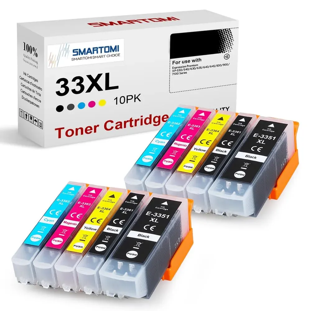Verfügbarkeit: Auf Lager - Kategorie: Druckerpatronen - GREENSKY - Das Produkt enthält: 3 × 33xl 33 xl Foto Schwarz, 3 × 33xl 33 xl schwarze Patrone, 3 × 33xl 33 xl Cyan-Patrone, 3 × 33xl 33 xl Gelbe Patrone, 3 × 33xl 33 xl Magenta-Patrone,inklusive 1 x Benutzerhandbuch Hervorragende Kompatibilität: GREENSKY 33XL Tintenpatronen verwenden die neueste Chiptechnologie, um den Tintenfüllstand zu überwachen und eine hohe Kompatibilität zu gewährleisten. Sie sind Kompatibel für Epson Expression Premium XP-530, Epson Expression Premium XP-540, Epson Expression Premium XP-630, Epson Expression Premium XP-635, Epson Expression Premium XP-640, Epson Expression Premium XP-645, Epson Expression Premium XP-7100, Epson Expression Premium XP-830, Epson Expression Premium XP-900 Hohe Druckleistung: Die schwarze Tintenpatrone GREENSKY 33XL reicht für bis zu 650 Seiten, die Farbpatrone für bis zu 500 Seiten (A4-Format, 5 % Deckung). Im Vergleich zu Tintenpatronen mit Standardkapazität ist diese höhere Druckleistung wirtschaftlicher Zuverlässige Druckqualität:Die GREENSKY 33XL Tintenpatronen liefern gestochen scharfen Text und lebendige Bilder €“ ideal für alltägliche Dokumente und farbenfrohe Fotodrucke zu Hause oder im Büro Einfache Installation: Wir bieten eine leicht verständliche Installationsanleitung für den Epson 33XL mit schriftlichen Anweisungen, illustrierten Demonstrationen und Video-Tutorials, die den Benutzern eine reibungslose Installation ... Dieses 10er-Pack kompatibler XL-Patronen von SMARTOMI ist eine sehr kostengünstige Option für Vielnutzer. ![]() ![]() SMARTOMI 33XL Multipack Druckerpatronen Kompatibel für Epson 33XL 33 XL für Epson XP 540 Druckerpatronen für XP-7100 XP-530 XP-640 XP-830 XP-900 XP-645 XP-635 XP-630(10er-Pack)