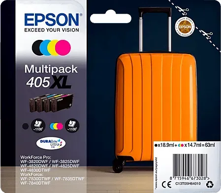 Auf Lager Versand durch AmazonEpson Orginal 405XL Tinte Koffer Multipack 4-farbig XL WF-3820DWF WF-3825DWF WF-4820DWF WF-4825DWF WF-4830DTWF WF-7830DTWF WF-7835DTWF WF-7840DTWF DURABrite Ultra Ink, ReadyPrint Flex-Tintentarife