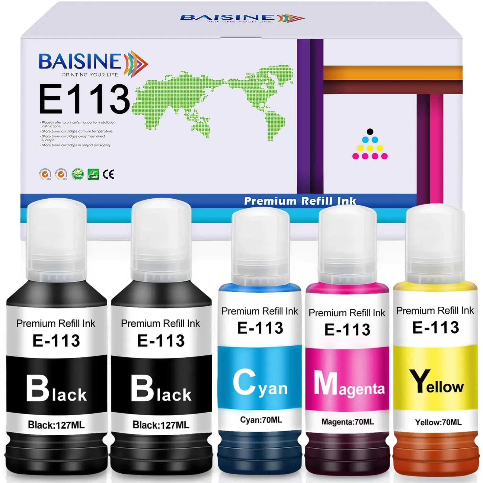 Kategorie: Druckerpatronen - InkPro - GTIN:4250544244996 - 490 ml Nachfülltinte Black, Cyan, Magenta, Yellow kompatibel mit Epson Ecotank 113 280 ml Black und je 70 ml Cyan, Magenta und Yellow kompatibel mit Epson EcoTank ET-16150, ET-16600, ET-16650, ET-5100, ET-5150, ET-5160, ET-5170, ET-5800, ET-5850, ET-5880, L-15150, EcoTank Pro ET-5800, ET-5850, ET-5880 In speziellen Nachfüllflaschen mit Adapter, direkt passend auf die Tanks der Drucker! - 17,99 Euro bei Amazon Marketplace CE - gefunden von billiger.de Dieses kompatible Multipack von BAISINE bietet eine sehr preiswerte Alternative zur Originaltinte. ![]() ![]() BAISINE 113 Tinte Kompatibel für Epson 113 Multipack für Epson EcoTank ET-16150 ET-16600 ET-16650 ET-16680 ET-5150 ET-5160 ET-5800 ET-5850 ET-5880, EcoTank Pro ET-15000 ET-5800 ET-5850 ET-5880