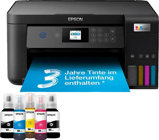 4 Werktagen in_stock - Computer & Büro Multifunktionsdrucker - EAN:8715946686394 - Tinte Im Lieferumfang Enthalten* *basierend Auf Einem Druckvolumen Von 100 Din-A4-Seiten Pro Monat Und Der Niedrigsten Ergiebigkeit Mit Dem Ersten Tintensatz. Foto- Und Business-Modelle Ausgenommen. Inklusive Tinte Für Bis Zu * 72 Tintenpatronen In Einem Einzigen Satz Flaschen* Sparen Sie Bis Zu 90 Prozent Tintenkosten* *auf Epson Berechnungen Basierende Durchschnittliche Kosten Pro Seite Und Die Durchschnittliche Anzahl Von Tintenpatronen, Die Benötigt Werden, Um Die Gleiche Anzahl Von Seiten Wie Mit Den Epson Ecotank ''102'' Und ''104'' Tintenflaschen Zu Drucken. Vergleich Zwischen Der Durchschnittlichen Ergiebigkeit (A4-Drucke Nach Iso/iec 24712-Testmuster) Der Ecotank ''102''- Und ''104''-Tintenflaschen-Serien Und Den Original-Verbrauchsmaterialien (Idc, Hardcopy Peripherals Consumables Tracker, Lieferungen 2021, Veröffentlicht Im 1. Quartal 2022), Die In Den 30 Meistverkauften A4-Tintenstrahldruckern Für Verbraucher In Frankreich, Deutschland, Italien, Spanien Und Großbritannien Verwendet Werden (Idc, Quarterly Hardcopy Peripherals Tracker, Lieferungen 2021, Veröffentlicht Im 2. Quartal 2022). Die Kosten Pro Seite Werden Berechnet, Indem Der Entsprechende Umsatz Aus Dem Verkauf Von Flaschen/patronen Und Die Ergiebigkeit Der Verkauften Einheit Geteilt Werden. - gefunden von Kelkoo Dieses Angebot vom Media Markt Online Shop ist identisch mit dem Mediamarkt.de Angebot und bestätigt den guten Preis für den 3-in-1 Drucker. ![]() ![]() EPSON EcoTank ET-2851 - nachfüllbarer 3-in-1 Tintentankdrucker, Duplex, WiFi, Apple AirPrint, Epson SmartPanel App Multifunktionsdrucker