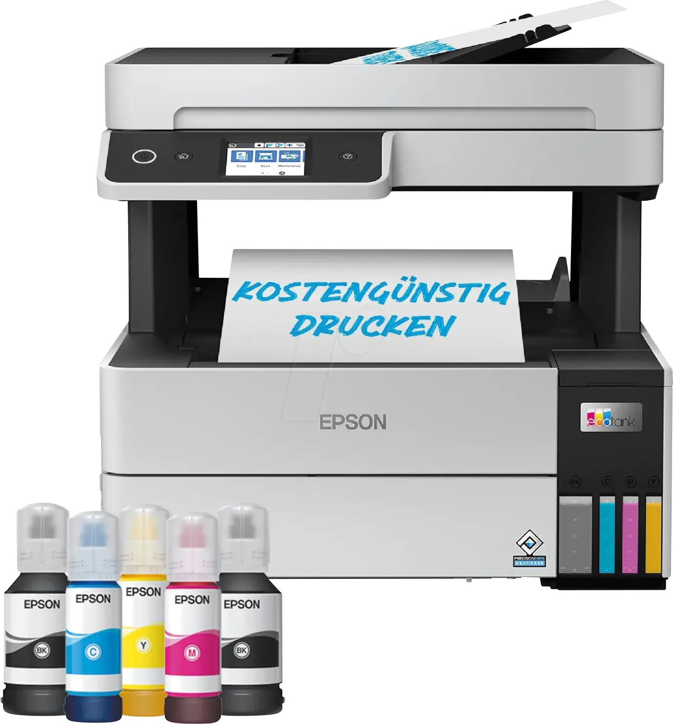 Epson - EAN: 8715946689821 - Dieser Drucker mit vielen Funktionen eignet sich ideal für Home Offices und kleine Unternehmen und bietet extrem niedrige Kosten pro Seite sowie ultraschnelle Druckgeschwindigkeiten. Dank dem vorderen Papierfach für 250 Blatt, dem 6,1 cm grossen Touchscreen und dem automatischen Dokumenteneinzug für 35 Seiten können Sie unterbrechungsfrei drucken. Per Wi-Fi und Wi-Fi Direct können Sie Dateien von Ihrem Smart-Gerät bequem mit der iPrint und der Smart Panel App von Epson drucken. Mit den wiederverschliessbaren, sicheren und sauberen Tintenflaschen ist das Nachfüllen des Tintentanks ein Kinderspiel. Der PrecisionCore-Druckkopf mit Heat-Free Technology sorgt für hohe Zuverlässigkeit, weniger Ausfallzeiten und weniger Abfall. Der Drucker braucht praktisch keine Aufwärmzeit. Das spart Strom und sorgt für eine schnelle erste Seite. - bei galaxus.de - aus Yadore Produktdaten Saturn Online Shop hat das gleiche attraktive Angebot wie Media Markt, was eine gute Verfügbarkeit und Konditionen verspricht. ![]() ![]() EPSON EcoTank ET-5150 - nachfüllbarer 3-in-1 Tintentankdrucker inkl. Tinte, ADF, Duplex, WiFi, netzwerkfähig Multifunktionsdrucker