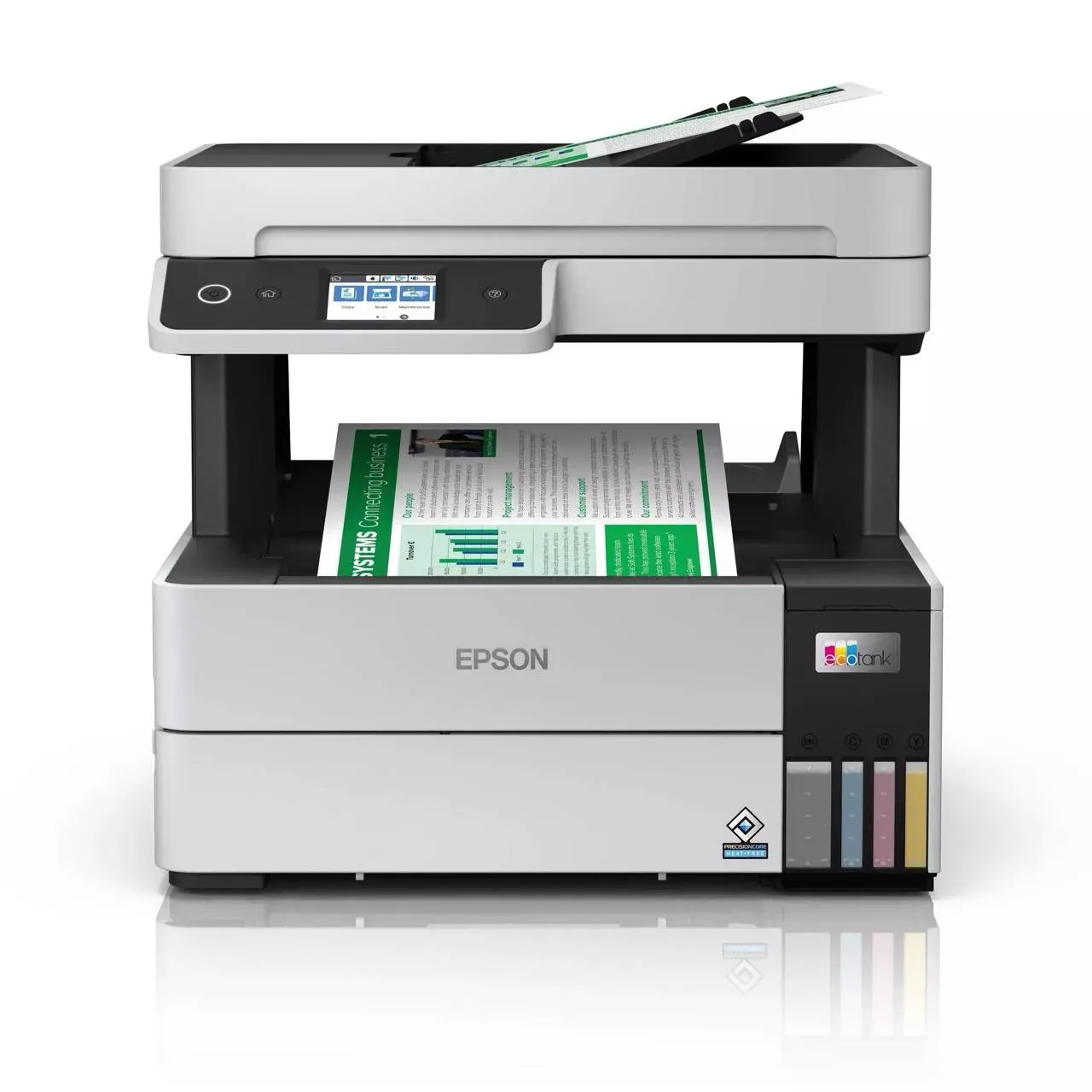 Kategorie: Multifunktionsdrucker - Epson - GTIN:8715946689821 - Effizienz neu definiertFür mehr Produktivität in Ihrem Home Office: Dieser ultraschnelle und effiziente Drucker druckt die erste Seite in nur 7 Sekunden.DIN A4 EcoTank-Drucker mit vielen FunktionenDrucken, kopieren und scannen Sie mit dem EcoTank ET-5150, der beidseitigen Druck, ein vorderes Papierfach für 250 Blatt und einen automatischen Dokumenteneinzug für 35 Blatt bietet. Sämtliche Funktionen können Sie einfach und bequem über den 6,1 cm großen LCD-Touchscreen auswählen und ausführen.Erhebliche KostenersparnisseMit diesem EcoTank sparen Sie Zeit und profitieren gleichzeitig von besonders niedrigen Seitenkosten.Druck in professioneller QualitätDie EcoTank 113-Tintenserie bietet Pigmenttinten für wisch-, wasser- und textmarkerfeste Ausdrucke. Mit einem einzigen Tintensatz können Sie bis zu 7.500 Seiten in Schwarzweiß und 6.000 Seiten in Farbe drucken.Mobil druckenPer Wi-Fi und Wi-Fi Direct können Sie Dateien von Ihren Smart-Geräten bequem mit der iPrint und der Smart Panel App von Epson drucken.Einfach in der Bedienung und zuverlässigMit den wiederverschließbaren, sicheren und sauberen Tintenflaschen ist das Nachfüllen des Tintentanks ein Kinderspiel. Der PrecisionCore-Druckkopf mit einzigartiger Heat-Free Technology sorgt für hohe Zuverlässigkeit, weniger Ausfallzeiten und weniger Abfall. Der Drucker braucht praktisch keine Aufwärmzeit. Das spart Strom und sorgt für eine schnelle erste Seite. Highlights - ... Reichelt.de bietet den Drucker mit LAN/WLAN und Duplex-Funktion an, was ihn für den professionellen Einsatz empfehlenswert macht. ![]() ![]()