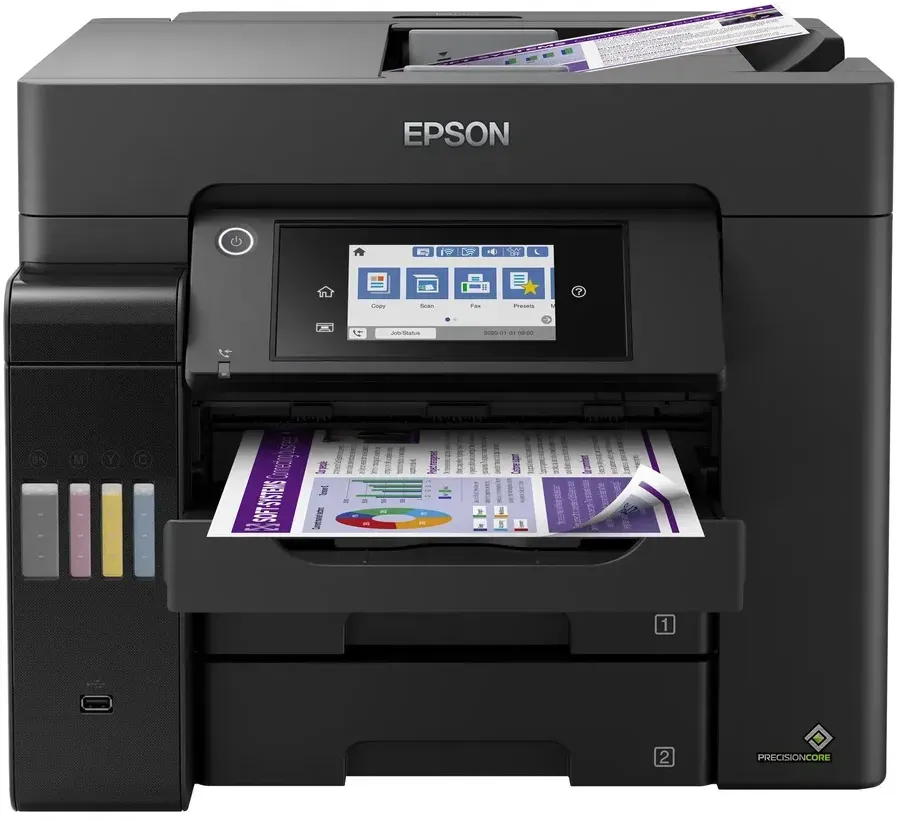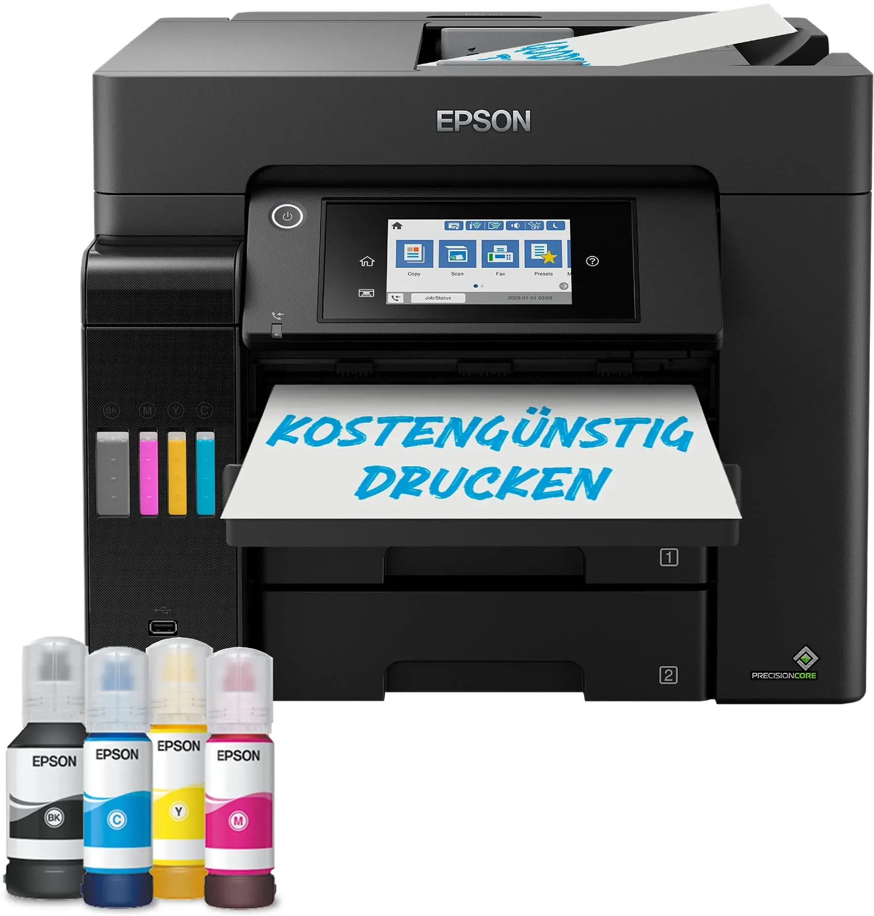 Kategorie: Multifunktionsdrucker - Epson - GTIN:8715946677224 - Epson ET-5850 / C11CJ29401 Multifunktionsdrucker schwarz - 1116,79 Euro bei druckdichaus - gefunden von billiger.de Dieses Angebot für den EPSON EcoTank ET-5850 ist eine gute Wahl für Nutzer, die ein umfassendes Druckpaket mit einem Ready Print MAX Abo wünschen. ![]() ![]() EPSON EcoTank ET-5850 DIN A4, Nur noch als Ready Print MAX ABO verfügbar.