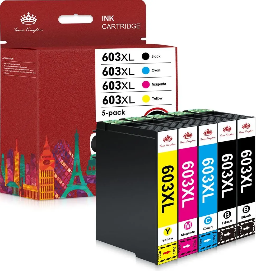 Epson - EAN: 8715946666792 - Epson 603 - 2.4 ml - Gelb - Original - Blisterverpackung - Tintenpatrone - für Expression Home XP-3100, XP-4100 - bei jacob.de - aus Yadore Produktdaten Ein weiteres sehr günstiges 5er-Pack kompatibler Patronen, das eine gute Option für Sparfüchse darstellt. ![]() ![]() Toner Kingdom 5er-Pack kompatible Epson 603XL Druckerpatronen für 603 XL Druckerpatronen für Epson Expression Home XP-3100 XP-4100 XP-2100 XP-2105 XP-3105 XP-4105