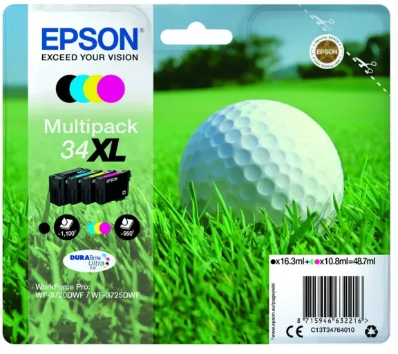 Kategorie: Druckerpatronen - Epson - GTIN:8715946632650 - Epson Tintenpatronen sorgen für erstklassige Qualität. Ganz gleich, ob Sie Privatanwender sind, im Büro drucken möchten oder professionell als Drucker arbeiten. Mit Epson Patronen ist für jedes Druckaufkommen gesorgt - ob Sie nun häufig oder nur ab und zu drucken müssen. Geniessen Sie einfaches und zuverlässiges Drucken mit Epson Originaltinten. - 110,04 Euro bei Galaxus.de - gefunden von billiger.de Office Partner bietet ein Original Epson Multipack zu einem attraktiven Preis, ideal für Nutzer, die auf Markenqualität setzen. ![]() Epson Original 34XL Golfball Druckerpatrone 4er Multipack schwarz cyan magenta gelb (C13T34764010)