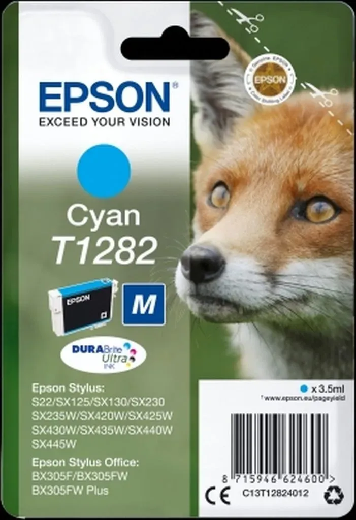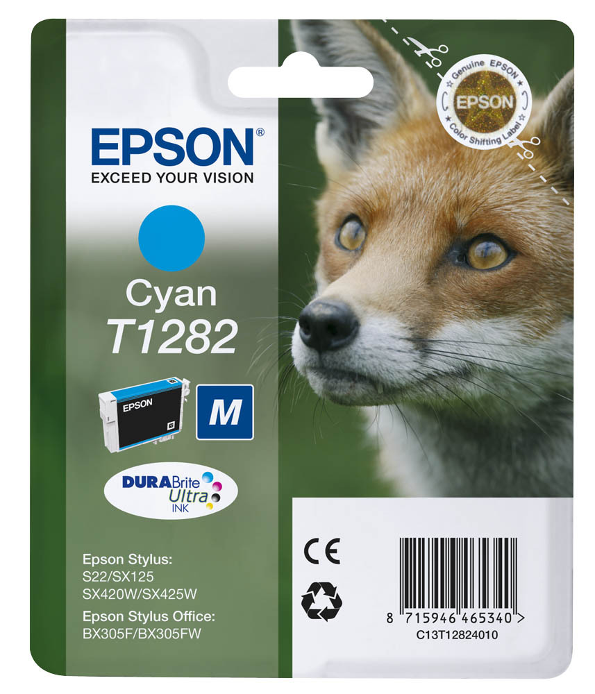 Auf Lager Versand durch AmazonEpson Original T1282 Tinte Fuchs, S22 SX125 SX420W BX305F BX305FW SX130 SX440W BX305FW SX435 SX235W, (cyan)