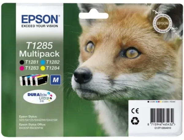 Auf Lager, sofort versandfertig Lieferzeit 1-2 WerktageEpson Original T1285 Fuchs Druckerpatronen 4er Multipack BK/C/M/Y (C13T12854012)