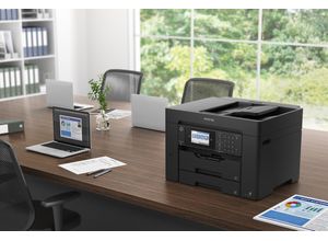Kategorie: Multifunktionsdrucker - Epson - GTIN:8715946668390 - Erweitern Sie Ihr Potenzial mit diesem DIN A3+ Multifunktions-Tintenstrahldrucker. Neben kostengünstigen Ausdrucken in hoher Qualität punktet er auch mit flexiblen WLAN-Funktionen. Mit diesem hochwertigen Multifunktionsgerät für das doppelseitige Drucken, Scannen und Kopieren alles mit Papierformaten bis hin zu DIN A3 können Sie auch große Projekte problemlos bewältigen. Dank Druckgeschwindigkeiten von bis zu 25 Seiten pro Minute1 in Schwarzweiß und automatischem Dokumenteneinzug (ADF) für 50 DIN A3-Blätter erledigen Sie Ihre Aufgaben im Handumdrehen. Ein weiteres Plus sind seine kosteneffizienten Tintenpatronen und flexiblen WLAN-Funktionen sowie Scan-to-Cloud2. Professioneller DIN A3+ Druck Dieser DIN A3+ Multifunktionsdrucker erfüllt die Anforderungen der anspruchsvollsten Benutzer in Kleinbüros und im Home Office. Er bietet Funktionen für doppelseitiges Drucken, Scannen und Faxen alles für Papierformate bis hin zu DIN A3. Sein automatischer Dokumenteneinzug (ADF) kann bis zu 50 doppelseitige DIN A3-Blätter verarbeiten. Außerdem sorgt sein PrecisionCore-Druckkopf für qualitativ hochwertige, laserscharfe Ausdrucke. Höhere Produktivität Dieses effiziente, zuverlässige und schnelle Modell punktet mit Druckgeschwindigkeiten von 25 Seiten pro Minute in Schwarzweiß und 12 Seiten pro Minute in Farbe1. Dank einer intuitiven Benutzeroberfläche und einem 10,9 cm-Touchscreen ist die Bedienung direkt am Gerät g - ... Ein Angebot von OTTO, das den Drucker mit WLAN, LAN, ADF und automatischem Duplexdruck hervorhebt. ![]() ![]()