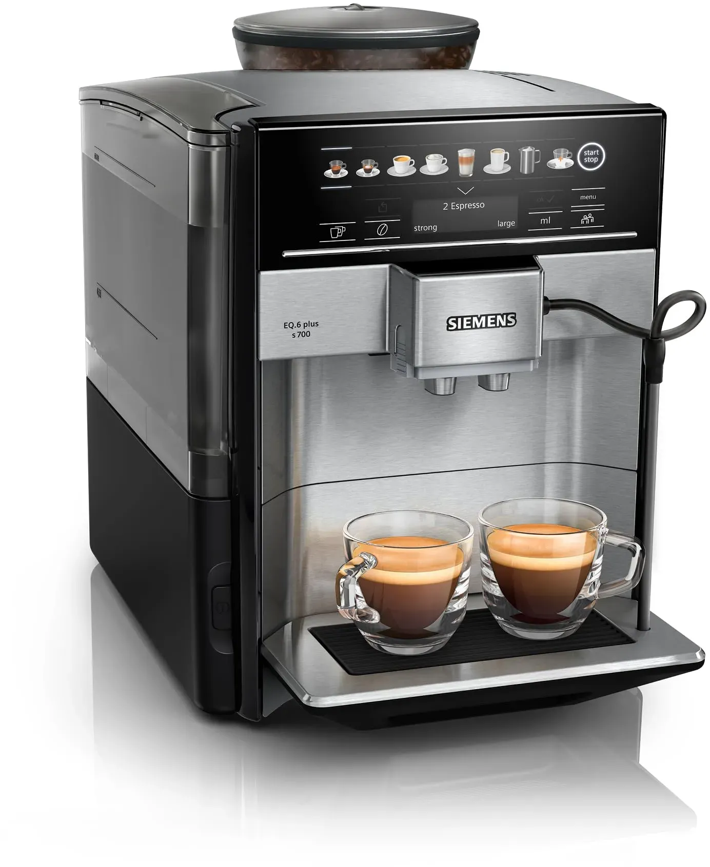 Auf Lager Versand durch AmazonSiemens Kaffeevollautomat EQ.6 plus s700 TE657503DE, für viele Kaffeespezialitäten, Milch-Aufschäumdüse, Keramikmahlwerk, Doppeltassenfunktion, Antikalk, automatische Dampfreinigung, 1500 W, edelstahl
