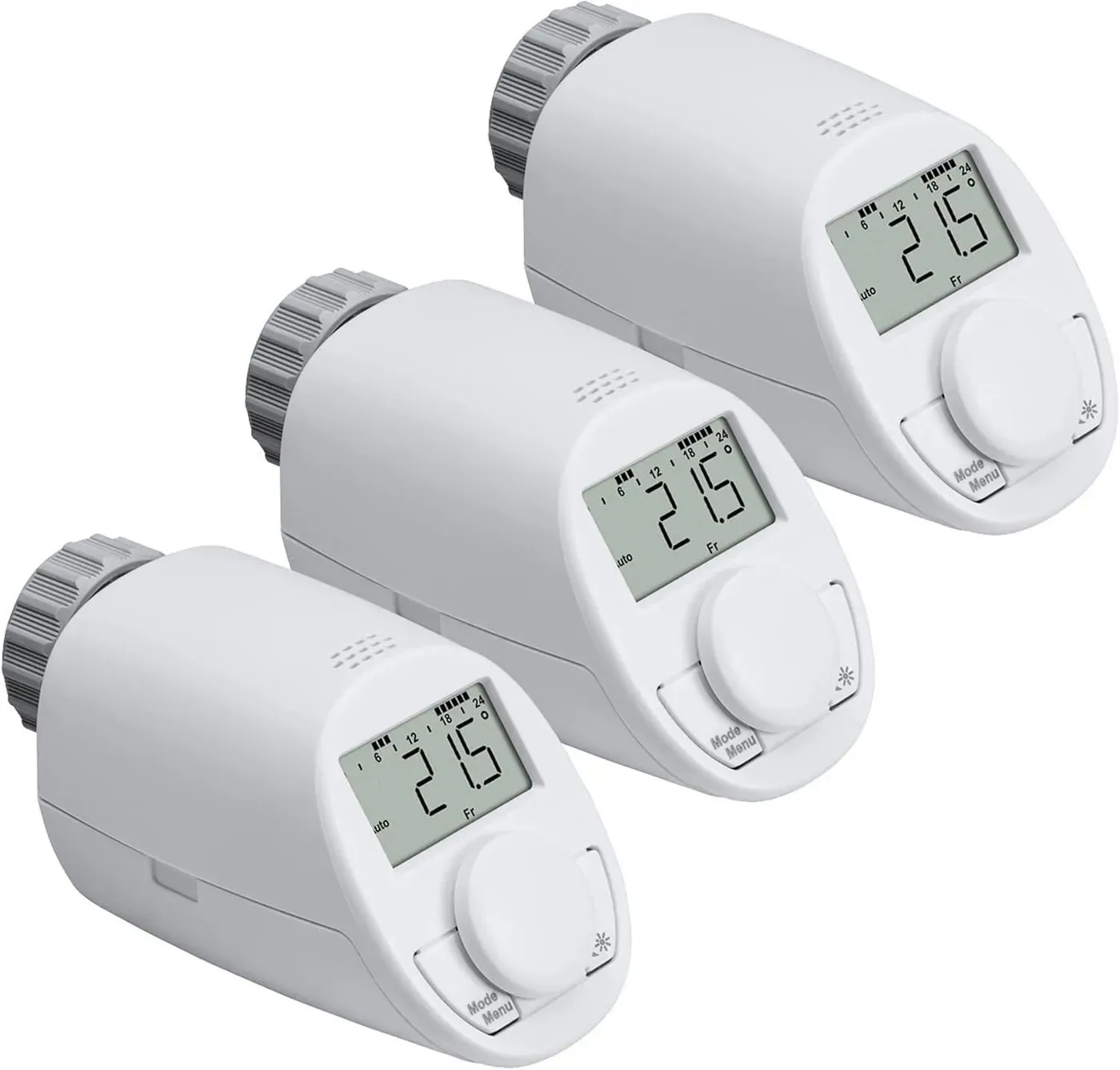 Haus- und Sicherheitstechnik Geräte-Technik Haustechnik Heizungstechnik Heizkörperthermostate Heimautomatisierung - Der Heizungsregler, Heizungssteller zum zeitgesteuerten und intelligenten Regulieren der Raumtemperatur im zeitlosen, schlichten Gehäuse und gleichzeitig kompakter Bauform.Mit dem Eqiva Heizkörperthermostat Model N werden Wohnräume mit nur wenigen Handgriffen um eine effektive, leicht bedienbare Temperaturregelung erweitert. Der schlanke Heizkörperthermostat ermöglicht die genaue Temperaturwahl und das zeitgesteuerte Regeln der Raumtemperatur. Einfache Montage ohne Ablassen von Wasser, ohne Spezialwerkzeug und ohne Eingriff in das Heizungssystem. Passend für die gängigsten Ventilhersteller wie Heimeier, Oventrop, Danfoss und Co. (Danfoss RA-Adapter liegt bei).Sofort einsatzbereit durch voreingestellte Programmierung, Schutz der Einstellungen durch eine Kindersicherung/Bediensperre möglich.Mit integrierter Frost- und Ventilschutz-Automatik sowie einer Temperatursturzerkennung.Der schlanke Heizkörperthermostat ermöglicht neben dem zeitgesteuerten Regulieren der Raumtemperatur auch eine exakte Temperaturwahl in 0,5 °C-Schritten per Drehrad auf der Vorderseite. Dank des schräg eingebauten Displays sind Bedienung und Anzeige auch unter ungünstigen Einbaubedingungen, bspw. in Heizkörpernischen, jederzeit komfortabel möglich. Sowohl die genaue Temperaturwahl als auch die individuell anpassbaren Wochenprogramme helfen aktiv beim Energiesparen und erhöhen gleichzeitig ... Dieses 5er-Set für 79.99 Euro ist eine umfassende und komfortable Lösung für die intelligente Heizungssteuerung im ganzen Haus. ![]() ![]() eqiva Heizkörperthermostat Set Elektronik-Heizkörperthermostat Model N mit Boost-Funktion, (5 St)