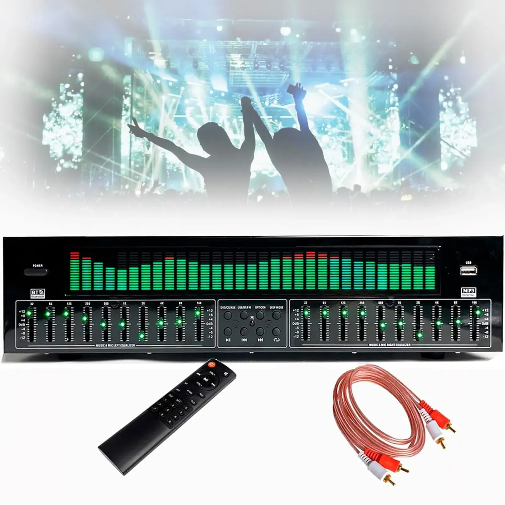 Gewöhnlich versandfertig in 4 bis 5 TagenToplionace EQ-799 Dual 20 Segment Stereo Equalizer, Verstärker Vorverstärker EQ Tone Höhen Midrange Bass 40 Road Equalizer Balanced Mixer Eingebautes Bluetooth (EQ799, Schwarz)