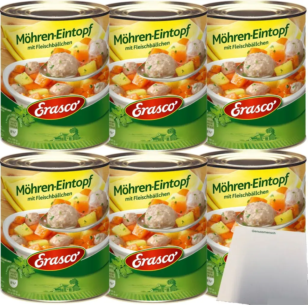 Erasco - EAN: 4037300704006 - . mit aromatischen Erbsen und vielen Möhren- und Kartoffelstückchen vegetarisch ohne geschmacksverstärkende Zusatzstoffe ohne künstliche Farbstoffe ohne Konservierungsstoffe lt. Gesetz - bei edeka24.de - aus Yadore Produktdaten Dieses 6er Pack des Möhren-Eintopfs mit Fleischbällchen ist eine gute Vorratsoption für Familien oder Vielverbraucher. ![]() ![]() Erasco Möhren-Eintopf mit Fleischbällchen 6er Pack (6x800g Dose) + usy Block