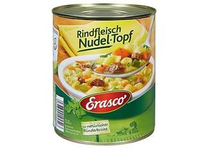 Feinschmecker Lifestyle - - Erasco Rindfleisch Nudel Eintopf 800,0 g - Versandkostenfrei: false - Sale: true - - - bei Büroshop24 - gefunden von shopping24 Der Erasco Pichelsteiner Topf ist ein deftiger Klassiker, der bei mehreren Händlern zu einem guten Preis erhältlich ist. ![]() ![]() Erasco Pichelsteiner Topf (1 x 800 g Dose)