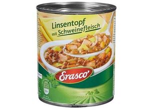 Zustand: Neu - 4,11 € / kg - Suppen & Eintöpfe Suppenkonserven & Eintopfkonserven - Erasco - 439 - EAN: 4037300104394 - VEGETARISCH: Der bunte Gemüsetopf von Erasco ist völlig fleischfrei für guten Geschmack bei jedem Bissen. FREI VON KONSERVIERUNGSSTOFFEN* UND GESCHMACKSVERSTÄRKENDEN ZUSATZSTOFFEN: Wir bereiten hochwertiges Gemüse besonders schonend und sorgfältig zu. Mehr braucht ein leckeres Fertiggericht nicht. MIT VIEL GEMÜSE: Leckeres Gemüse liefert die Basis für den legendären Erasco Geschmack - perfekt abgeschmeckt mit aromatischen Gewürzen und ausgesuchten Kräutern. EINFACH UND SCHNELL ZUBEREITET: Keine Zeit zu kochen? Mit uns ist trotzdem Zeit, gut zu essen. Egal, ob zuhause, auf der Arbeit oder unterwegs: Unsere Fertiggerichte sind immer ein Hochgenuss. PRAKTISCH UND PERFEKT FÜR CAMPING UND FESTIVALS: Man darf eine Dose Erasco Bunter Gemüsetopf natürlich auch zuhause zubereiten. Aber beim Camping macht es wahrscheinlich am meisten Spaß. - bei Amazon.de Der Westfälische Linsen-Eintopf mit Essig ist eine spezielle Variante für Kenner und bietet einen einzigartigen Geschmack. ![]() ![]() Erasco Westfälischer Linsen-Eintopf Mit Essig 800g),