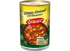 Zustand: Neu - 4,98 € / kg - Suppen & Eintöpfe Suppenkonserven & Eintopfkonserven - Erasco Continental Foods Germany GmbH - E10332 - EAN: 4037300103328 - mit erlesenem Langkornreis ohne geschmacksverstärkende Zusatzstoffe ohne künstliche Farbstoffe ohne Gentechnik ohne Konservierungsstoffe, laut Gesetz - bei Amazon.de Dieser Linsen-Eintopf mit Würstchen in der kleineren 400g-Packung ist ideal für eine Einzelportion und sehr preiswert. ![]() Erasco Linsen-Eintopf mit Würstchen 400,0 g