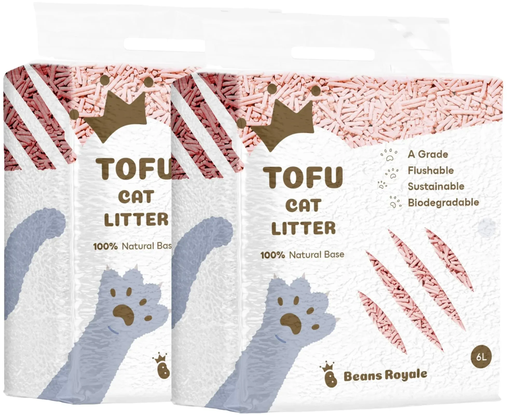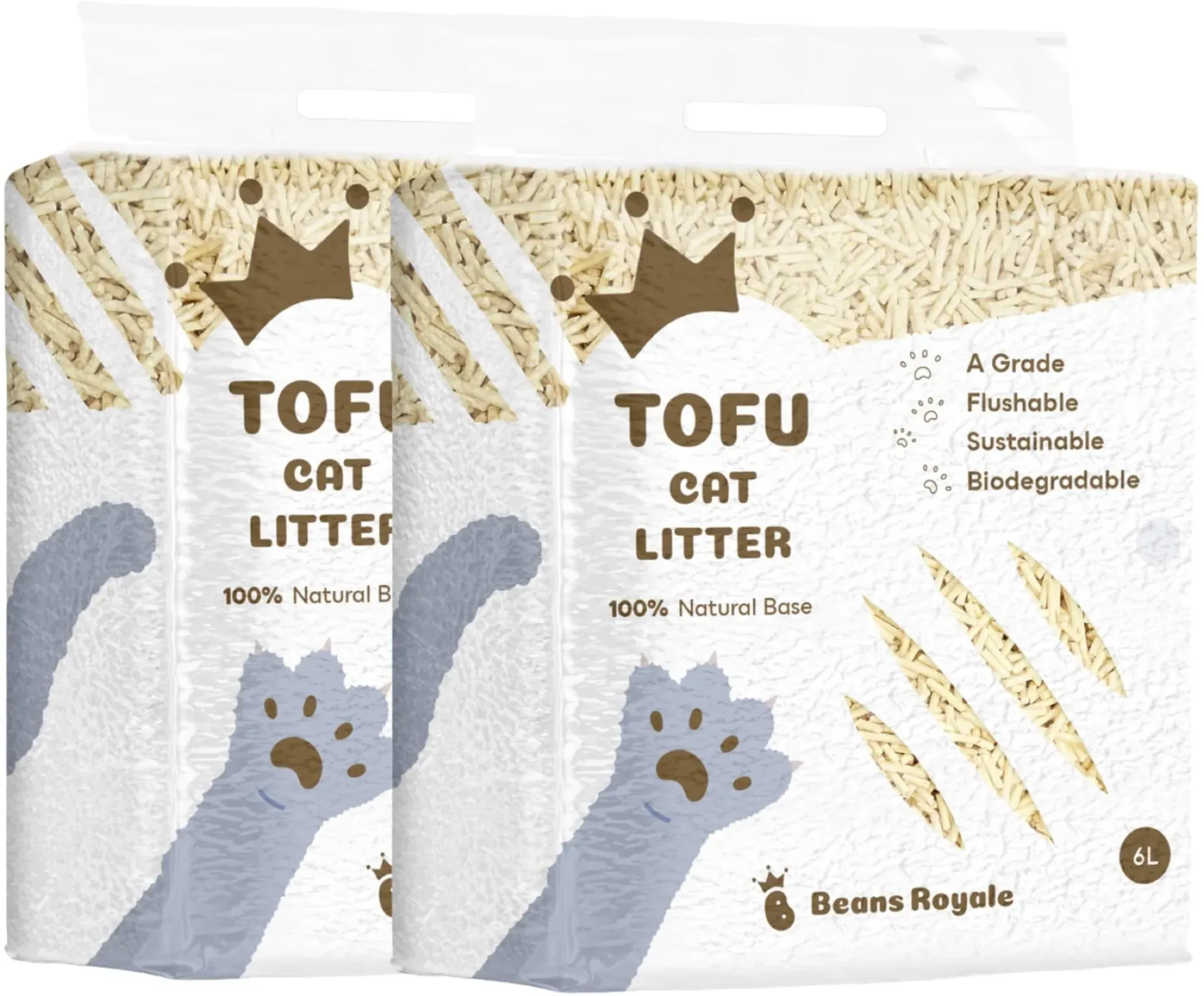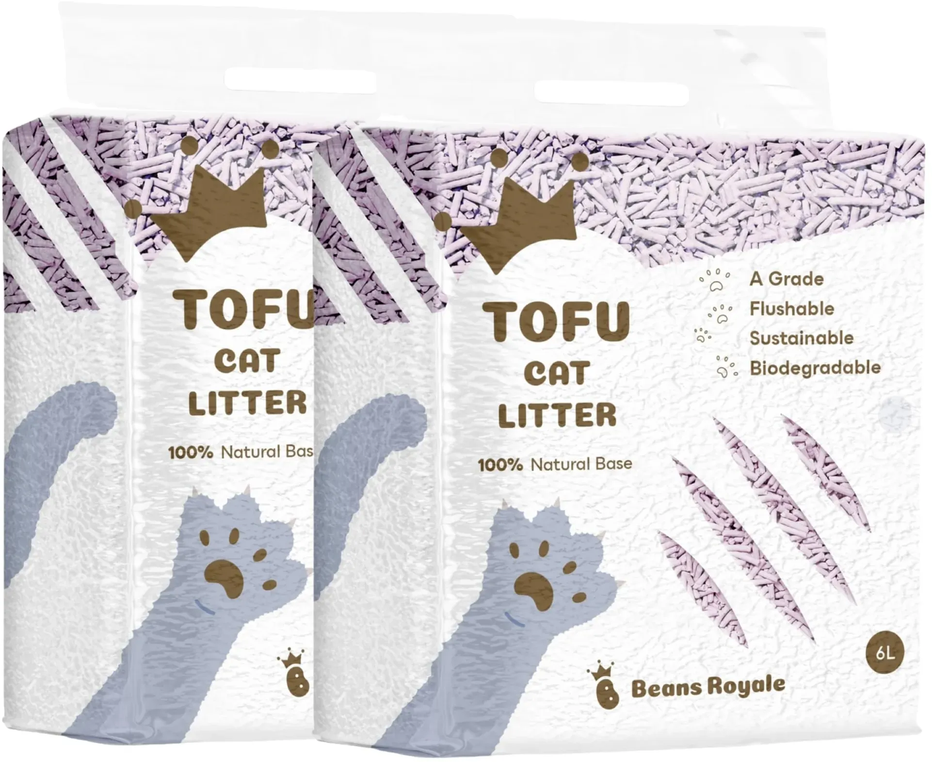Auf Lager Versand durch AmazonBeans Royale Tofu-Katzenstreu, klumpendes Katzenstreu, spülbar, Erbsenfaser, staubfrei, Geruchskontrolle, geringe Verfolgung (2x6L)