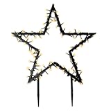 Verfügbarkeit: Auf Lager - Kategorie: Gartenverzierungen - Spetebo - GTIN:4260461479180 - Die Größe beträgt ca. 66,5 cm x 60 cm (Höhe x Durchmesser) Material: Metall (Rahmen) / Kunststoff - Leuchtfarbe: warm weiß Leucht Stern mit 150 LED - Lichterkette um den Rahmen gewickelt - Durchmesser des Sterns ca. 60 cm Gartenstecker für den Außenbereich (inkl. IP 44 Adapter) - Zuleitung ca.: 3,0 m Artikel wird fertig montiert geliefert - muss nur noch ineinander gesteckt werden! - 34,49 Euro bei Amazon Marketplace Lawn & Garden - gefunden von billiger.de Ein umfangreiches 6er-Pack mit 5m Länge, ideal für eine großflächige und stimmungsvolle Beleuchtung. ![]() ![]() SALCAR 5m Weihnachtsbeleuchtung Außen, 6er Pack LED Stern Weihnachtsdeko Garten, Außenbeleuchtung Stableuchte mit Erdspieß, Schwarze Sterne, Warmweiß