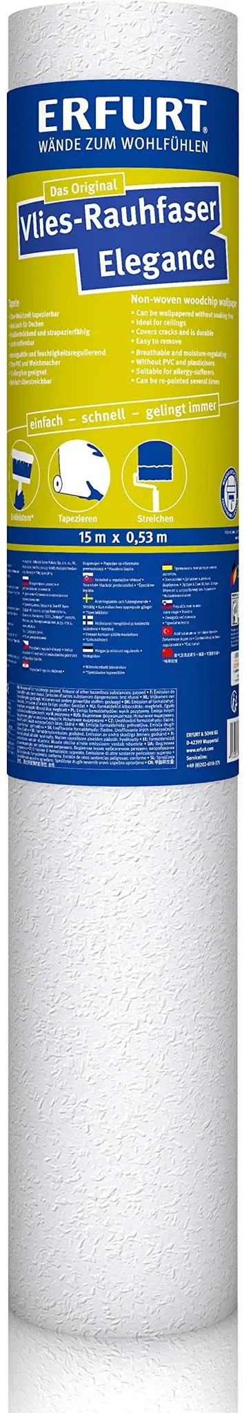 Zustand: Neu - 1,99 € / quadratmeter - Tapeten - Erfurt Erfurt & Sohn KG - Vlies-Rauhfaser Elegance 2132691 - EAN: 4000599888603 - Schnelles Tapezieren ohne Weichzeit: ERFURT Vlies Rauhfaser in der Wandklebetechnik oder mit Kleistergerät verarbeiten Wohngesundes Raumklima: Die atmungsaktive Rauhfasertapete ist frei von Schadstoffen- ideal für Büro und Wohnzimmer Die feuchtigkeitsregulierende Tapete ist bei Bedarf mehrfach überstreichbar- optimal für eine individuelle Raumgestaltung ERFURT Tapeten aus Recycling-Papier, Zellstoffen und Textilfasern sind für den Einsatz an Wand und Decke geeignet Made in Germany: Zuverlässige weiße Renoviertapete für hoch frequentierte Räume wie Kinderzimmer, Flur und Küche - Verkäufer: okluge im amazon.de Marketplace ![]() ![]() 1 Rolle - ERFURT Vlies-Rauhfasertapete eBay ELEGANCE, 15 m x 0,53 m, Vliestapete