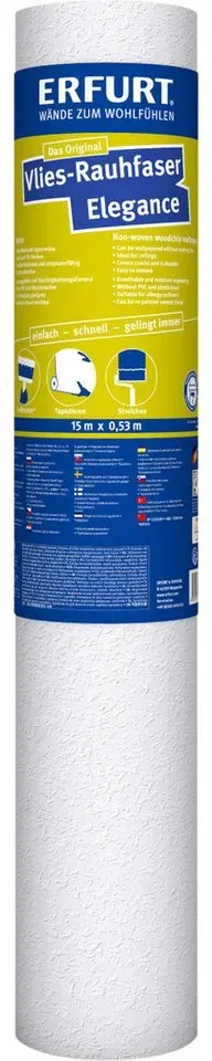 ![]() ![]() ERFURT Vliestapete Rauhfaser ELEGANCE, Weiß, 15 m x 0,53 m - 1 Rolle weiß