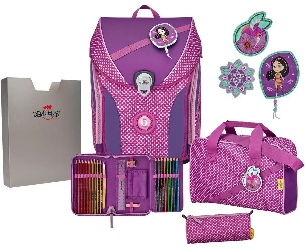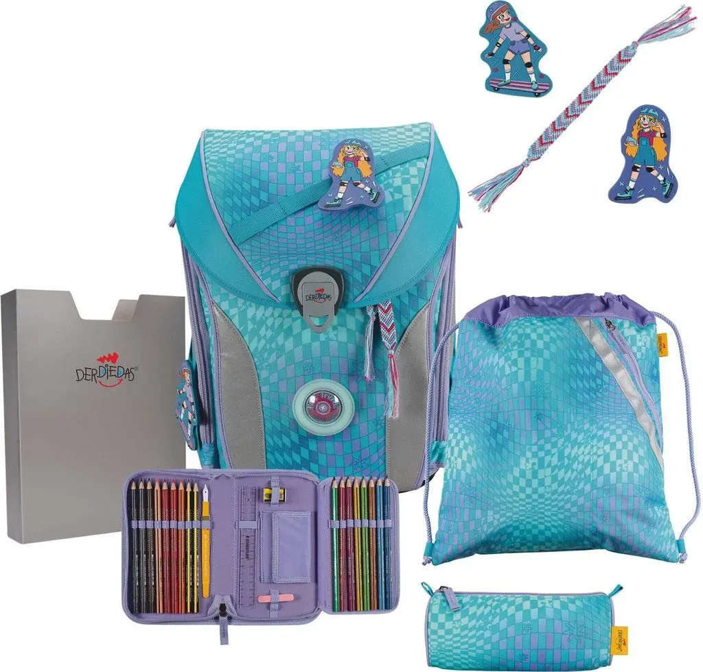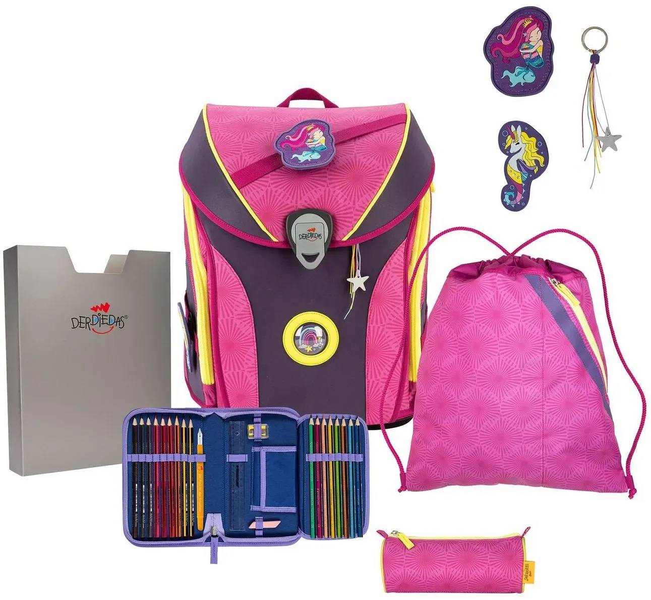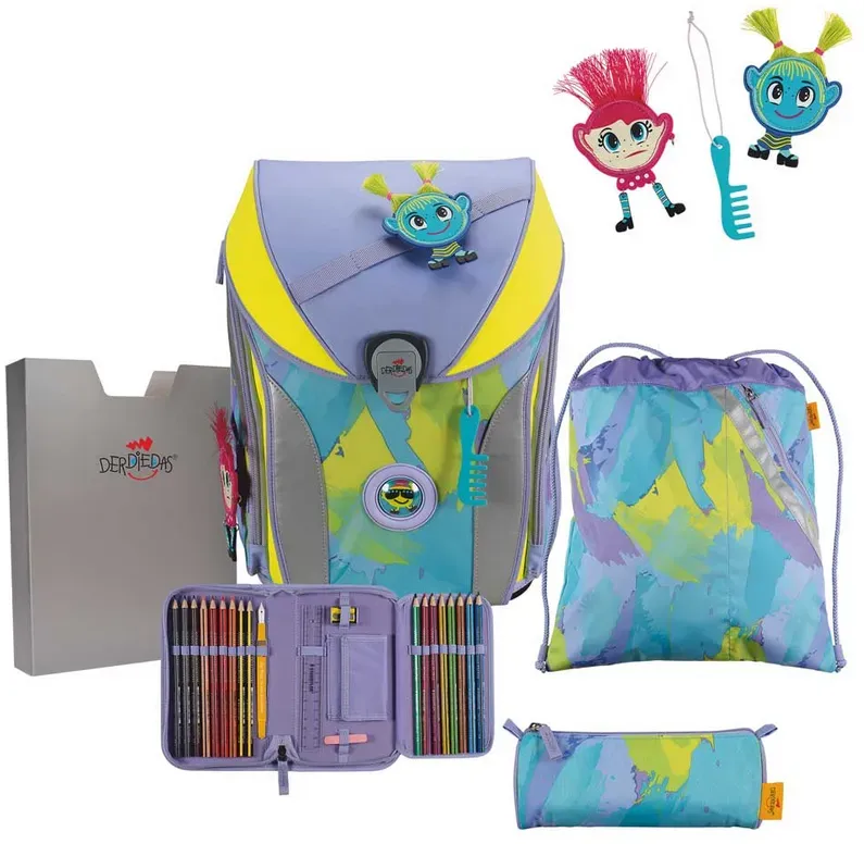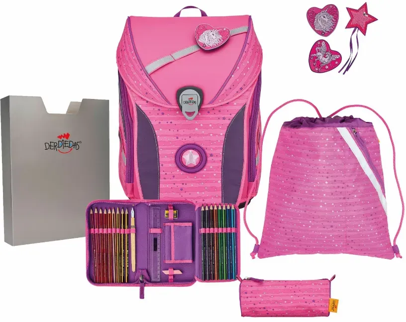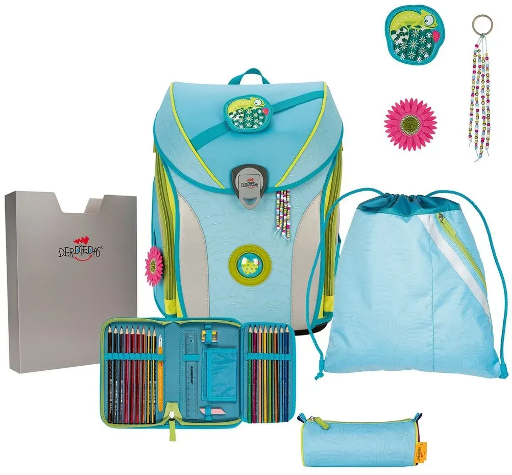 7 Händlerangebote bei billiger.de - Kategorie: Schulranzen - DerDieDas - Schulrucksack-Set ErgoFlex Superlight, Das Leichtgewicht!Leicht, leichter, Superlight - der ErgoFlex Superlight wiegt nur 650 Gramm und ist das Leichtgewicht. Trotzdem bietet er aber mit ca. 22 Litern ein großes Packvolumen. Die megacoolen Wechselbuttons und Anhänger machen euren Rucksack zu einem chilligen Unikat. Besser geht Ìs nicht! Die großen reflektierenden Flächen sorgen für einen sicheren Schulweg. Das Beste aber ist: Der ErgoFlex Superlight kommt im praktischen Komplett-Set mit Heftebox, Sportbeutel, Faulenzermäppchen, einem befüllten Schüleretui (Staedtler Qualitätsstifte) und 2 Wechselbuttons und Anhänger. So macht Schule Spaß!*Abbildung ähnlichWir machen Schule. Leichter.Diese Aufgabe haben wir uns selbst gestellt und setzen sie konsequent um: Schulranzen und Schulrucksäcke von DerDieDas zählen zu den leichtesten auf dem Markt. Doch trotz des geringen Gewichts wird kein Gramm an der Ausstattung gespart. Unsere Modelle bieten ergonomischen Tragekomfort, viel Raumvolumen und innovative Details wie das kinderleicht zu öffnende DerDieDas Schloss. Die Kinder begeistert DerDieDas mit exklusiven Dessins und macht es auch den Eltern leichter denn zum Schulranzen-Set gehört immer das komplette Zubehör.DerDieDas Schulranzen: Von der AGR empfohlen!Das AGR-Gütesiegel. Die Aktion Gesunder Rücken entstand aus der Erkenntnis, dass rückengerecht gestaltete Produkte ... Dieses ErgoFlex MAX Buttons 5-tlg. Purple Dots Set ist mit 193 Euro eine solide Option für ein farbenfrohes Schulranzenset. ![]() ![]() DerDieDas ErgoFlex MAX Buttons 5-tlg. purple dots