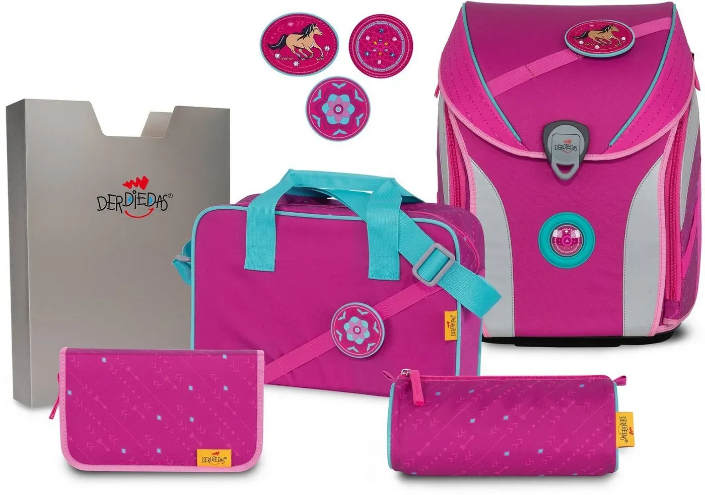 3 Händlerangebote bei billiger.de - Kategorie: Schulranzen - DerDieDas - Material , Nylon, Farbe , boho, Optik , gemustert, Motiv , Pferde, Anzahl Teile , 5, Lieferumfang , Schulrucksack, Sporttasche mit Klettinnenfach (B/T/H: ca. 33/12/22 cm), 22-teiliges Schüleretui mit 1 Seitenklappe, befüllt mit Staedtler-Qualitätsstiften (B/T/H: ca. 12/4/20 cm), Heftebox (B/T/H: ca. 25/6/31 cm), Faulenzermäppchen (B/T/H: ca. 21/8/9 cm), 3 Buttons zum individuellen Gestalten des Schulrucksacks, Schultertragegurt , ja, Schultertragegurtdetails , verstellbar, gepolstert, ergonomisch geformt, Brustgurt , ja, Brustgurtdetails , verstellbar, Hüftgurt , ja, Hüftgurtdetails , gepolstert, ergonomisch geformt, atmungsaktiv, verstellbare Rückenlänge , ja, Rückensystemdetails , ergonomisch geformt, gepolstert, höhenverstellbar, Rückendetails , gepolstert, atmungsaktiv, Anzahl Hauptfächer , 1, Anzahl Vordertaschen , 1, Vordertaschenverschluss , Reißverschluss, Vordertaschendetails , verschließbar, Anzahl Seitentaschen , 2, Seitentaschendetails , verschließbar, Außenausstattung , Trageschlaufe, Standfüße, Seitenfächer mit Reißverschluss, Fronttasche mit Reißverschluss, Innenausstattung , Mäppchenhalter, Organizereinteilung, Besondere Merkmale , mit 3 Buttons; enthält recyceltes Material (Global Recycled Standard), Sicherheitsausstattung , Reflektoren, Breite , 29 cm, Tiefe , 25 cm, Höhe , 39 cm, Volumen , 22 l, Gewicht , 950 g, - GTIN:4006047081398 Dieses ErgoFlex MAX Buttons 5-tlg. Blue Fairy Set ist mit 180 Euro ein attraktives Angebot für ein komplettes Schulranzenset. ![]() ![]() DerDieDas ErgoFlex MAX Buttons 5-tlg. blue fairy