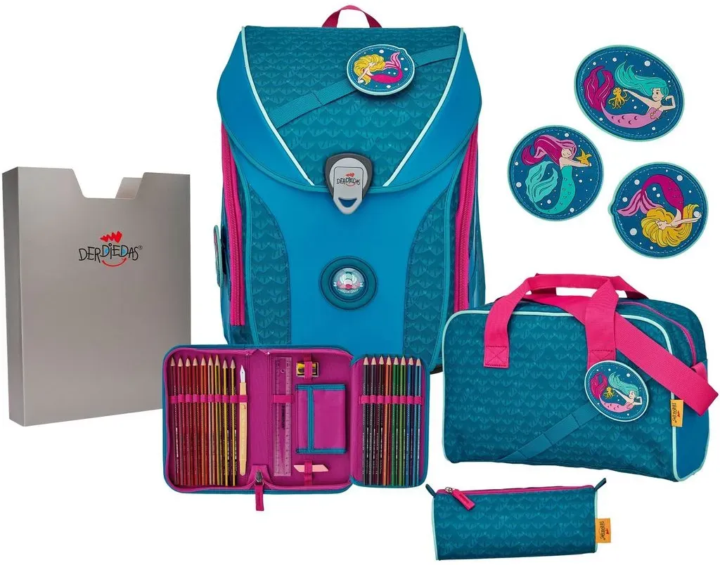7 Händlerangebote bei billiger.de - Kategorie: Schulranzen - DerDieDas - Diese Schultasche wiegt nur 950 GrammEin Schulranzen, der auf die richtige Größe mitwächstPer Knopfdruck lässt sich das LED-Licht um das Bullauge aktivierenDer Schulranzen DerDieDas Ergoflex MAX EXKLUSIV LED Active - der stabile Schulranzen von DerDieDas mit festem Korpus.Der Ergoflex MAX EXKLUSIV LED bleibt mit seinem festen Korpus immer gut in Form und lässt sich besonders leicht packen, und das bei einem Eigengewicht von gerade mal ca. 950 Gramm. Trotz seines geringen Gewichts verfügt der Ergoflex MAX EXKLUSIV LED Active mit einem Volumen von ca.22 Litern über mehr als genügend Platz für sämtliche Schulutensilien Ihres Kindes. Und damit diese Schultasche auch immer perfekt auf den Rücken Ihres Kindes passt, lassen sich die Schultergurte sekundenschnell auf die passende Größe einstellen. Neben dem gepolsterten Rückteil sorgen auch die abnehmbaren Hüftgurte, welche das Gewicht von der Schultern auf die Hüften verteilen, für ein ergonomisches Tragen. Dank der stabilen Bodenplatte mit den vier Stellfüßen verliert der Ergoflex MAX EXKLUSIV LED Active nie den Stand, und die liebevollen Motivbullaugen machen diesen Schulranzen zu einem echten Hingucker. Außerdem lässt sich das neue Magnetschloss in kindgerechtem Design kinderleicht mit einer Hand bedienen und schließt automatisch beim Zuklappen des Deckels. Die retroreflektierende Spezialfolie erhöht die Sichtbarkeit Ihres Kindes im ... Das ErgoFlex MAX Exklusiv Superflash Buttons 5-tlg. Pink Mermaid Set ist mit 199.99 Euro eine beliebte Wahl für Mädchen. ![]() ![]() DerDieDas ErgoFlex MAX Exklusiv Superflash Buttons 5-tlg. pink mermaid