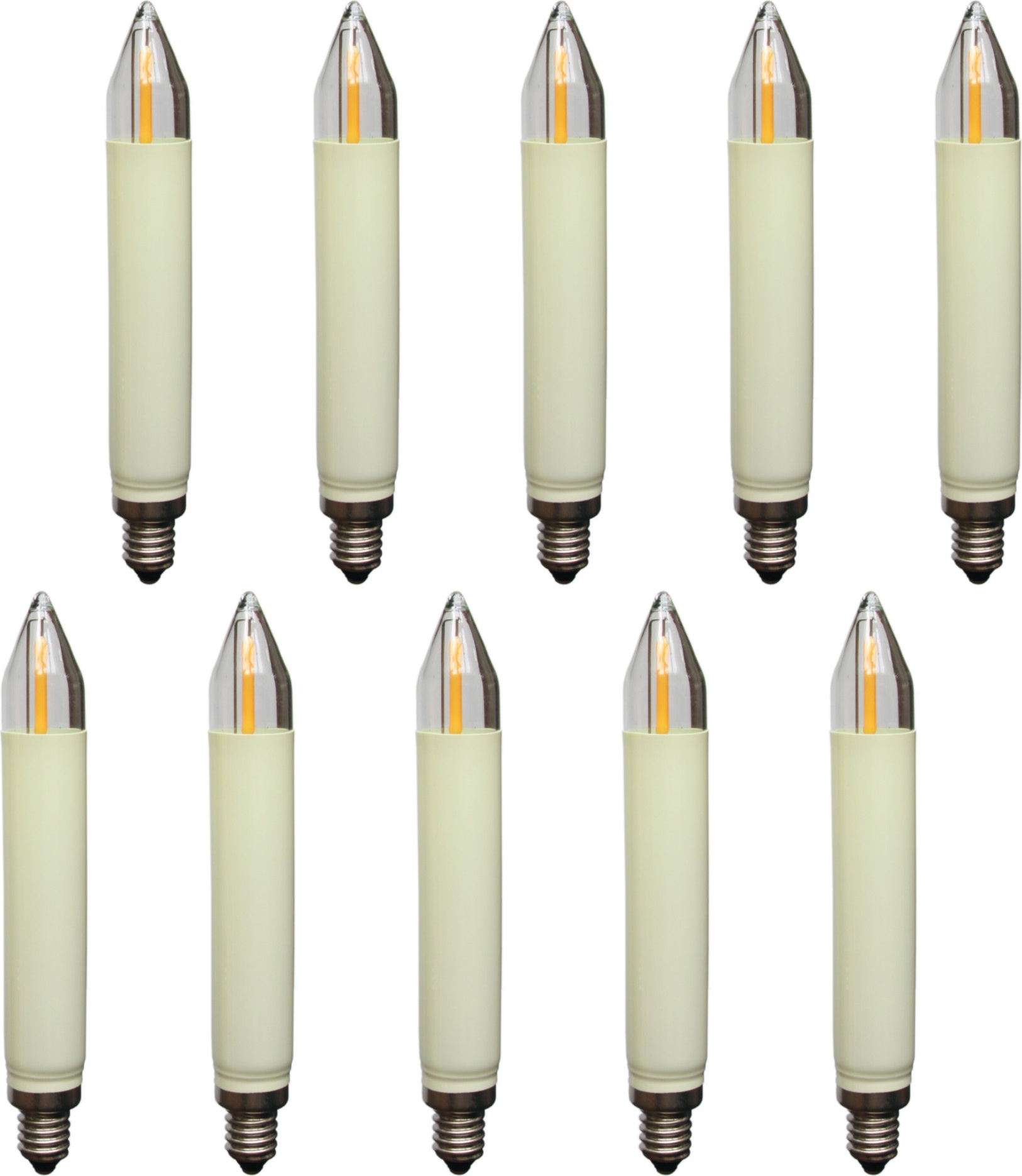 Kategorie: Sonstige Leuchtmittel - erzgebirgslicht glück auf - GTIN:4255720902301 - Glühlampen für Schwippbögen, Lichterbogen oder die Weihnachtspyramide. Ebenso für Lichterketten mit E10-Fassung geeignet. Mit dem guten alten Glühfaden (keine LED!) für festliches, stimmungsvolles Licht 5 Stück Ersatzlampen mit E10 Gewinde. Ideal als Ersatz-Birne für Lichterketten und Lichterbögen sowie alle gängigen Schwibbögen Die 'traditionellen' Ersatzbirnchen mit Glühfaden strahlen ein warmgelbes bis warmweißes Licht aus, im Gegensatz zu den neueren LED-Lampen. Das klassische Ersatzteil für Ihre Weihnachtsbeleuchtung bzw. Bogenleuchte 5er Pack Topkerzen / Riffelkerzen / Spitzkerzen | Glaskörper klar, durchgehend geriffelt | Lichtfarbe : warmweiss | für innen ANWENDUNGSMöGLICHKEIT: Ersatzbirne bzw. Lämpchen für Ihre Lichterkette, Schwippbogen, Weihnachtsbeleuchtung, Lichterbogen, Weihnachtspyramide etc. , für innen verwendbar UNIVERSELL EINSETZBAR: Die Spitzschaftkerzen, auch Topkerzen genannt, sind für Lichterketten bzw. Lichterbögen mit E10-Sockel sämtliche Hersteller verwendbar. verfügbar in 8V / 12V / 14V / 15V / 16V /23V / 24V / 34V / 46V / 48V / 55V (ausgewählte Sorte siehe Produkttitel oben auf dieser Seite) Energieeffizienzklasse: nicht erforderlich, da Lichtstrom nicht zwischen 60 und 28.000 lm (Lumen) liegt - 5,99 Euro bei Amazon Marketplace Home - gefunden von billiger.de Dieses 2er-Set LED Filament Kleinschaftkerzen ist eine günstige Möglichkeit, einzelne defekte Birnen durch energieeffiziente LEDs zu ersetzen. ![]() ![]() erzgebirgslicht glück auf Erzgebirgslicht - AUSWAHL - 2 Stück LED Filament Kleinschaftkerze 12V 0,2W E10 für 20 Brennstellen Ersatzbirne Glühbirne Minischaftkerze Glühlämpchen für Lichterketten Pyramide und Schwibbogen