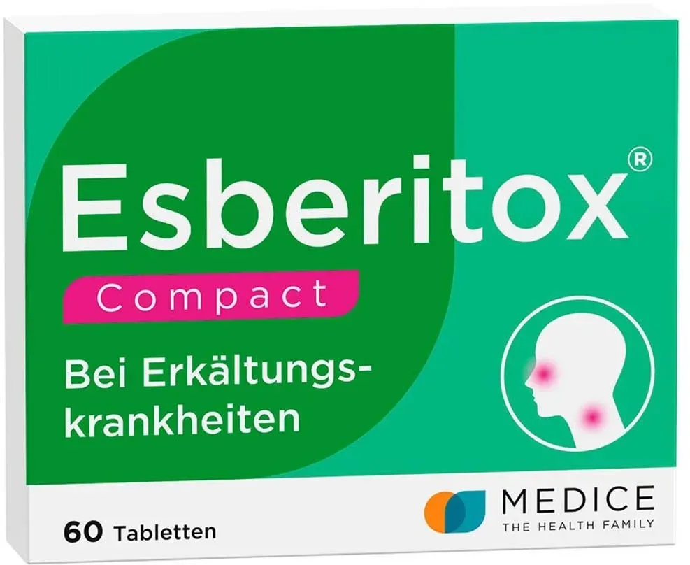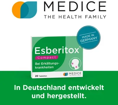 Zustand: Neu - 0,57 € / Stück - Erkältung & Grippe Medikamente bei Erkältung - ESBERITOX Hersteller: SCHAPER & BRÜMMER GmbH & Co. KG, Deutschland (Originalprodukt) - 10014351 - EAN: 4150100143513 - ðŸŒ¡ï¸ ð—¦ð—°ð—µð—¼ð—» ð˜„ð—¶ð—²ð—±ð—²ð—¿ ð—²ð—¿ð—¸äð—¹ð˜ð—²ð˜? - Esbertiox COMPACT unterstützt das Immunsystem und lindert Erkältungsbeschwerden sehr effektiv mit der 5-fach konzentrierten Heilkraft ðŸŒ¡ï¸ ð—žð—²ð—¶ð—»ð—² ð—ð—²ð—¶ð˜ ð—³üð—¿ð˜€ ð—žð—¿ð—®ð—»ð—¸ð˜€ð—²ð—¶ð—»? - Esberitox COMPACT verkürzt nachweislich die Erkältungsdauer um bis zu 3 Tage ðŸŒ¡ï¸ ð—Ÿð—®ð—»ð—´ð˜‡ð—²ð—¶ð˜ ð—¯ð—²ð˜„äð—µð—¿ð˜ - die Wirkstoffkombination in Esberitox COMPACT ist seit Jahren bewährt und durch wissenschaftliche Studien mit Hunderten von Patienten bestätigt ðŸŒ¡ï¸ ð—£ð—³ð—¹ð—®ð—»ð˜‡ð—²ð—»-ð—£ð—¼ð˜„ð—²ð—¿ - Esbertiox COMPACT enthält die dreifache Heilpflanzenpower mit Färberhülse, Lebensbaum und Sonnenhut gegen typische Erkältungsbeschwerden ðŸŒ¡ï¸ ð—™ð—¿ð—¶ð˜€ð—°ð—µð—²ð—¿ ð—šð—²ð˜€ð—°ð—µð—ºð—®ð—°ð—¸ - Esberitox COMPACT überzeugt mit seinem frischem Zitronengeschmack und ist geeignet für alle Erwachsenen und Jugendlichen ab 1 - 20 Händler im amazon.de Marketplace Onfy.de bietet 40 Tabletten für 17,48 Euro an, was ein sehr guter Preis für die mittlere Packungsgröße ist. ![]() ![]() MEDICE Esberitox Compact 40 ST