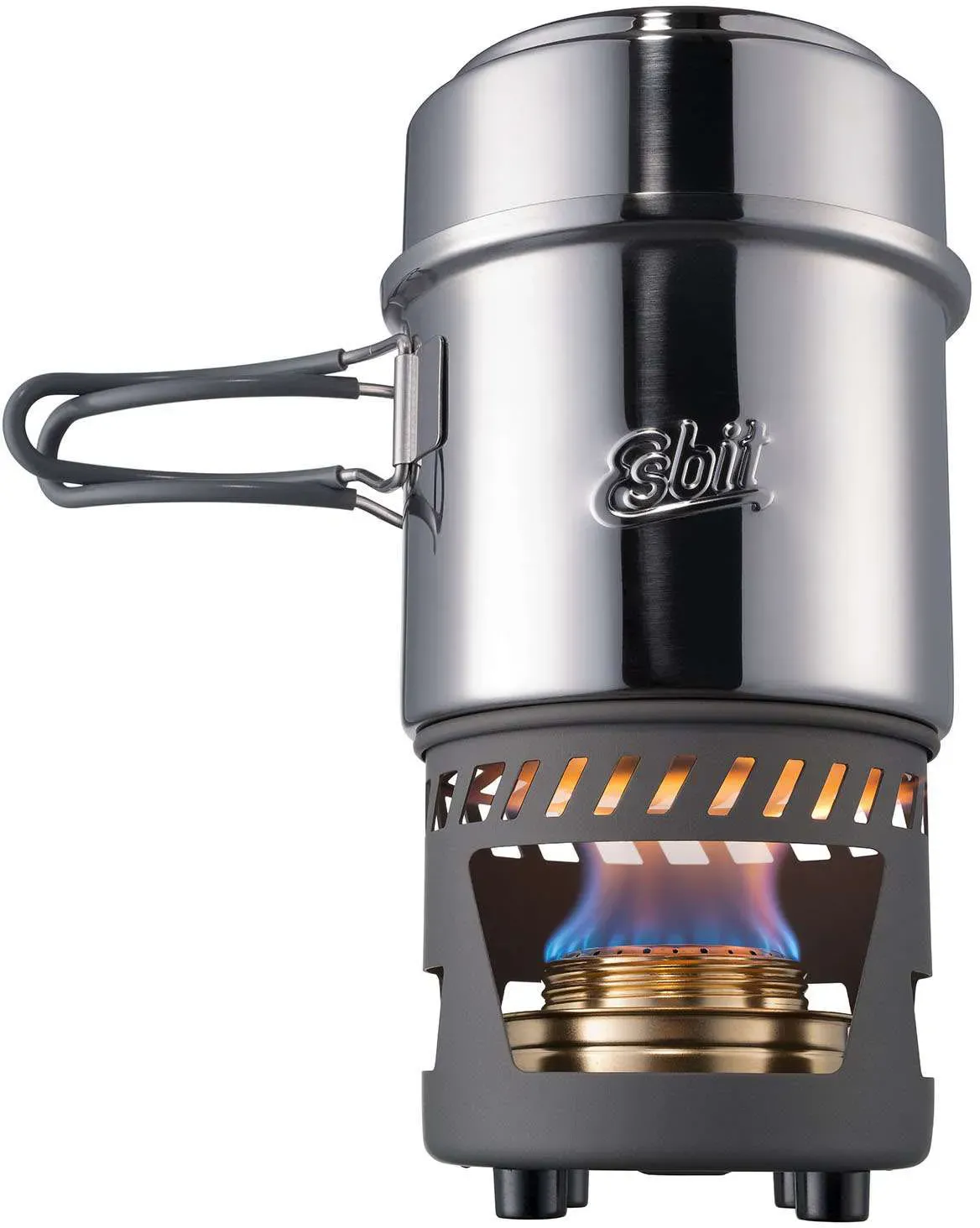 5 Händlerangebote bei billiger.de - Kategorie: Campingkocher - Esbit - ZWEI TöPFE - Der Deckel des größeren Topfes für 985 ml lässt sich ebenfalls als kleiner 470 ml Topf nutzen. Der größere Camping Topf hat eine Volumenanzeige in ml / oz Skala. Beide Töpfe verfügen über klappbare, hitzebeständige Griffe. SPIRITUSBRENNER - Der Spiritus Brenner besteht aus Messing und ist dank Schraubdeckel mit Gummidichtung auslaufsicher. Sein Flammenregulierer hat einen Klappgriff zum komfortablen Regulieren und Löschen der Flamme. PRAKTISCH - Das Campingkocher Set findet zusammengestellt für den Transport in einem Netzbeutel Platz. Mit nur etwa 417 g ist das kompakte Esbit Kocher Set leicht und nimmt kaum Platz im Gepäck ein. KOCHEN OHNE STROM - Der Outdoor Kocher eignet sich hervorragend für das Kochen unterwegs auf Reisen. Eine 70 ml Füllung des Brenners reicht für eine Brenndauer von bis zu 30 Minuten. ESBIT - Esbit steht für Qualitätsprodukte rund um die Stärkung für unterwegs. Ob Outdoor oder Alltag - das Sortiment umfasst unter anderem Campingkocher Sets, Trinkflaschen, Thermobehälter und Campinggeschirr. - GTIN:4260149871350 Ein Spiritus-Kochset aus Edelstahl mit 470 ml und 985 ml Töpfen, das eine vielseitige Kochlösung für mehrere Personen bietet. ![]() ![]() Esbit Spiritus-Kochset, 470 ml / 985 ml 18/8 Edelstahl