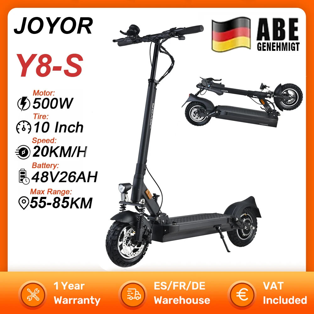 Sport Freizeit Lifestyle - - Acer eScooter Series 5 Advance - Versandkostenfrei: true - Lieferzeit: 1 Tag - Sofort verfügbar: true - - - bei Office Partner - gefunden von shopping24 Der JOYOR Y8-S ist ein E-Scooter mit ABE, guter Reichweite und aufblasbaren Reifen für komfortables Fahren. ![]() JOYOR Y8-S Elektroroller 500 W EScooter 48 V 26 Ah Geschwindigkeit 20 km/h Reichweite 55 75 km 10 Zoll aufblasbare Reifen Elektroroller mit ABE