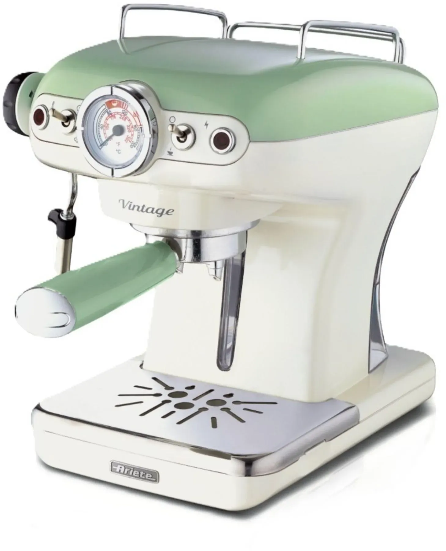 Gewöhnlich versandfertig in 3 bis 4 TagenAriete Vintage Espresso 1389, Retro Espressomaschine für Pulver oder ESE-Pads, 1 - 2 Tassen, Cappuccino-Düse, Edelstahl-Tassenhalter, 15 Bar, 850W, Grün
