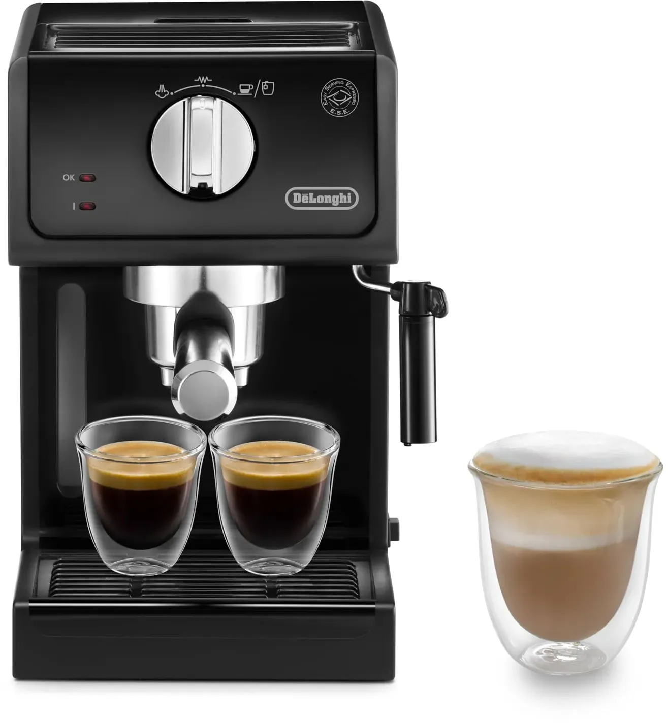 Kategorie: Espressomaschinen - Ariete - GTIN:8003705113930 - PULVER ODER ESE-PADS: Der Filtereinsatz dieser Kaffeemaschine verfügt über einen 4/2-Tassen-Filter und einen ESE-Pads-Filter, für die Verwendung von entweder gemahlenem Kaffee oder ESE-Pads KöSTLICHER KAFFEE: Das 850-Watt-Aluminium-Gehäuse und die 15-bar-Druckpumpe ren einen vollmundigen, cremigen Espresso mit intensivem, duftendem Aroma EINFACHE NUTZUNG: Dieser Espresso-Maker bietet hervorragenden Komfort durch ein herausnehmbares Edelstahl-Abtropfgitter, sowie einen abnehmbaren 0,9-Liter-Tank zum einfachen Nachfüllen MILCHAUFSCHäUMER: Die Funktion Maxi-Cappuccino eignet sich als perfekter Helfer für die Zubereitung von cremigem Milchschaum in Kombination mit dem italienischem Espresso ARIETE VINTAGE LINE: Mit dieser Ariete Espressomaschine, mit ihrem schlichten Design, den dezenten Farben und edlen Oberflächen, bringen Sie einen Hauch von Retro-Stil in Ihre Küche - 165,10 Euro bei Amazon Marketplace Kitchen - gefunden von billiger.de Die DeLonghi Dedica ist eine beliebte und schlanke Siebträgermaschine, die sowohl Kaffeepulver als auch ESE-Pads verarbeiten kann. ![]() DeLonghi De'Longhi Dedica EC685.M Siebträger Kaffeemaschine, metal