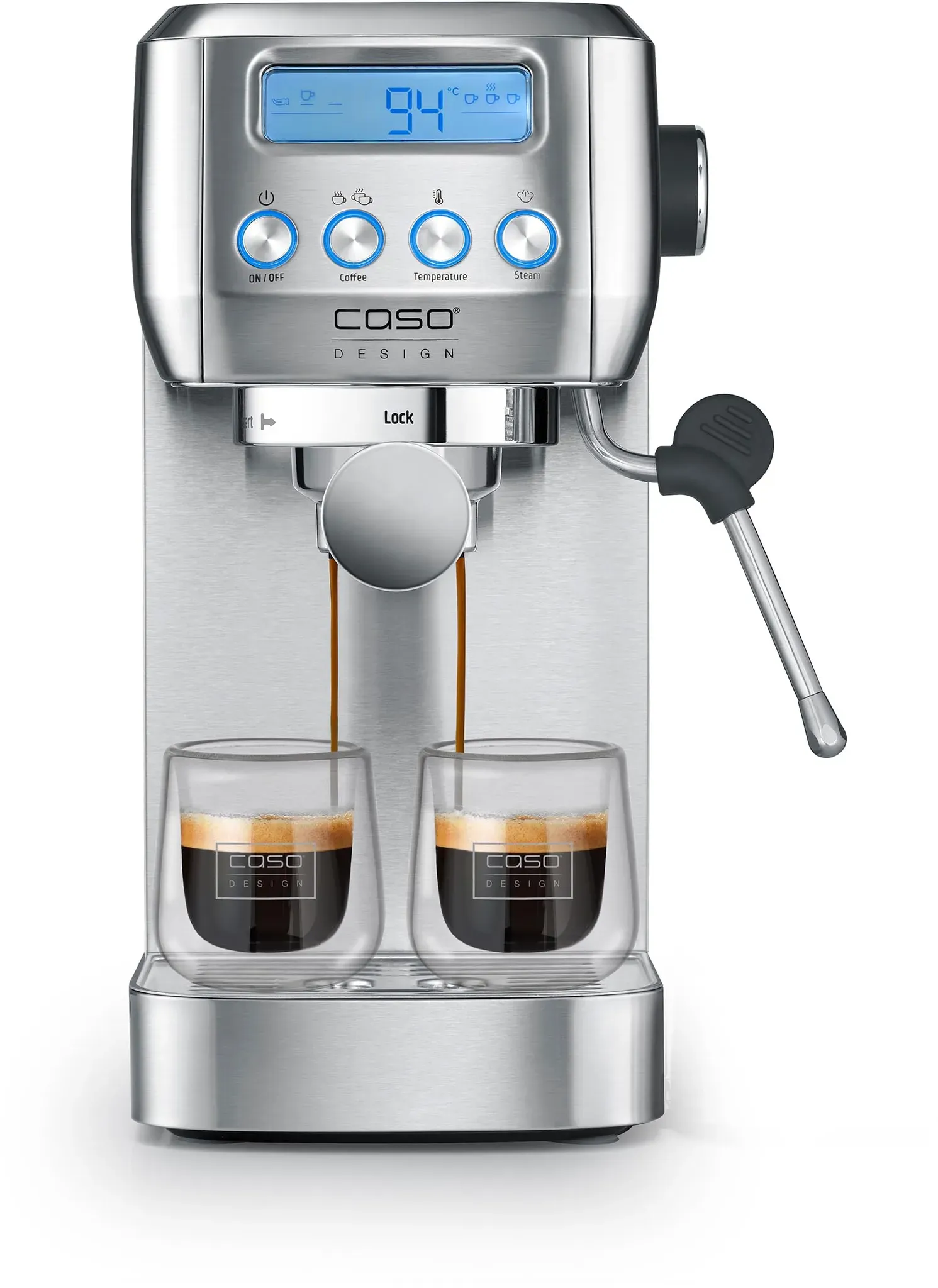 Kategorie: Espressomaschinen - De'Longhi - GTIN:8004399329348 - TRADITIONELLE SIEBTRäGERMASCHINE: Dank 15 bar Druck sorgt die Maschine für einen aromatischen Espresso mit einer perfekten Crema EXQUISITER ESPRESSO: Die stilvolle Siebträgermaschine überzeugt mit einem professionellen Siebträgerhalter und sorgt dank 2 separater Thermostate für eine konstante Temperatur während der Zubereitung MANUELLES CAPPUCCINO SYSTEM: Die traditionelle Milchschaumdüse vermischt Dampf, Luft und Milch zu besonders cremigem Schaum für einen perfekten Cappuccino im eigenen Zuhause PRAKTISCHE ZUBEHöRAUFBEWAHRUNG: Die zusätzlichen Filtereinsätze für 1 oder 2 Tassen gemahlenes Espressopulver oder Kaffeepads sowie der Tamper können ordentlich im Gerät verstaut werden LIEFERUMFANG: 1 x Espressomaschine ECP3121 in Schwarz von De'Longhi - 144,90 Euro bei Amazon Marketplace Kitchen - gefunden von billiger.de Die CASO EspressoGourmet Crema bietet eine starke 20-Bar-Pumpe und ist sowohl für Kaffeepulver als auch ESE-Pads geeignet. ![]() ![]() CASO Design CASO EspressoGourmet Crema - Siebträgermaschine, Espressomaschine, mit Milchaufschäumer, Espresso, Cappuccino, Siebträger aus Edelstahl, 20 bar ULKA-Pumpe, Kaffeemaschine Kaffeepulver, ESE Pads