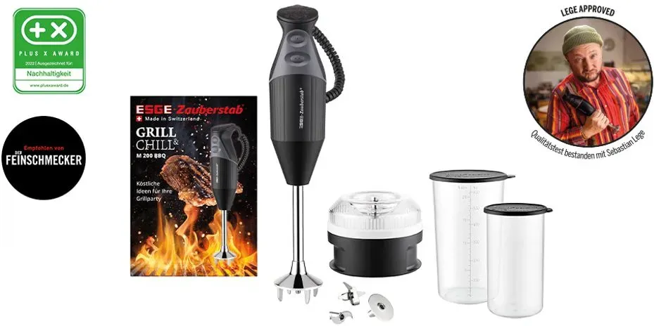 Kategorie: Mixer - ESGE - GTIN:4011689982156 - ESGE-Zauberstab M 200 BBQMarinaden, Dips, Relish, Gewürzmischungen... Was auch immer auf den Grill kommt, wird begleitet von würzigem Drum - 191,00 Euro bei TECHNIKdirekt - gefunden von billiger.de ![]() ![]() ESGE-Zauberstab M 200 BBQ