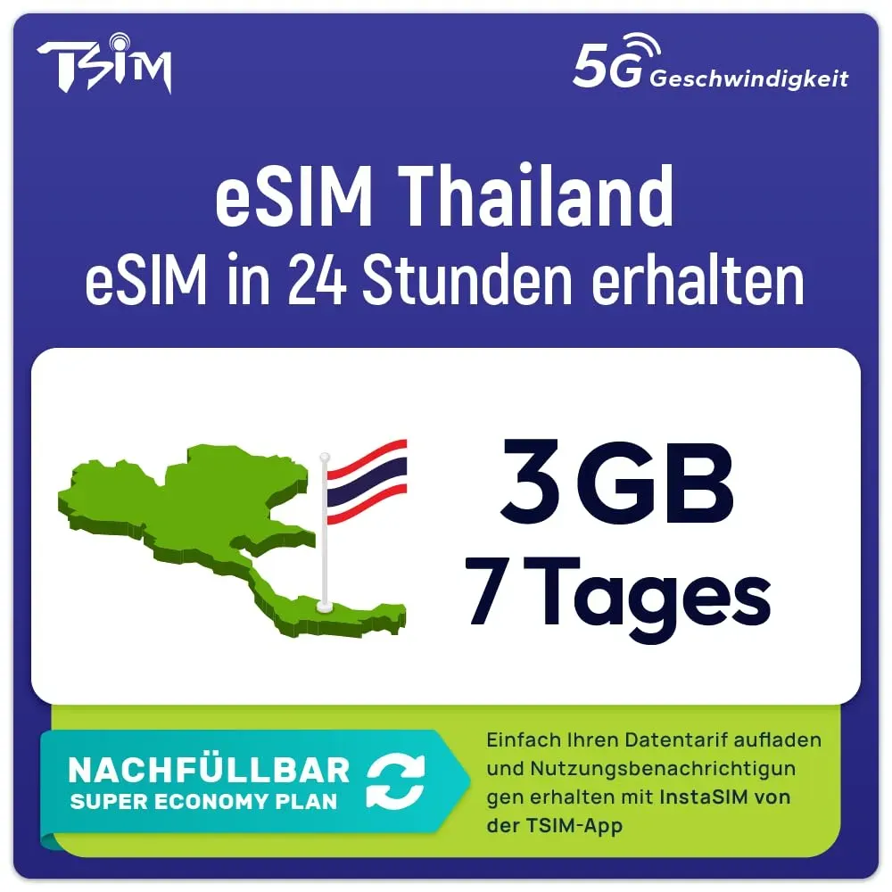 Preisbereich: Für eine typische Reise-eSIM sollten Sie mit Preisen zwischen ca. 4 USD (1 GB, 7 Tage) und 20 USD (10 GB, 10 Tage) rechnen. Für unbegrenzte Daten oder längere Gültigkeit können die Kosten höher liegen (bis über 100 USD für mehrere Monate)[2][5][6]. Zusammengefasst sollten Sie beim Kauf eines eSIM-Adapters auf Länderabdeckung, Tarifart (Daten-only vs. mit Nummer), Datenvolumen, einfache Aktivierung und Preis-Leistungs-Verhältnis achten. Beliebte und bewährte Marken sind Airalo, Holafly und Yesim. Der Preis hängt stark von Ihrem Nutzungsverhalten und der Reisedauer ab, liegt aber meist zwischen 4 und 20 USD für Kurzzeitpläne. Für eine konkrete Produktsuche können Sie z.B. nach Airalo eSIM, Holafly eSIM oder Yesim eSIM im Meta-Preisvergleich suchen. Jetzt live Suche nach esim adapter starten! Empfohlene Esim adapter Angebote*Durch Käufe über Links zu Händlern kann diese Website eine Provision erhalten, u.a. durch das eBay Partner Network und das AmazonPartnerNetHier ist eine Auswahl von 15 repräsentativen und empfehlenswerten eSIM-Adapter-Angeboten aus der Gesamtliste, die verschiedene Preisbereiche und Arten abdecken: Dieser günstige Nur-Daten-eSIM-Tarif ist ideal für Reisende nach Thailand, die eine schnelle und einfache Internetverbindung benötigen. ![]() ![]() tsim Thailand eSIM | 7 Tage | 3gb | Nachfüllbarer Tarif | 5G Geschwindigkeit | Hotspot | Nur-Daten. QR-Code Wird innerhalb von 24 Stunden gesendet, scannen zur Aktivierung, Keine Telefonnummer
