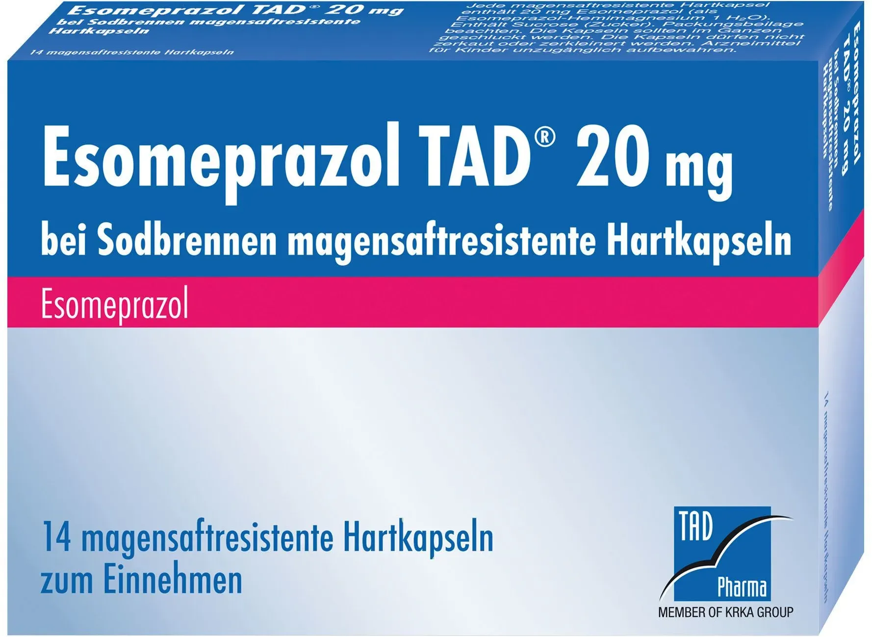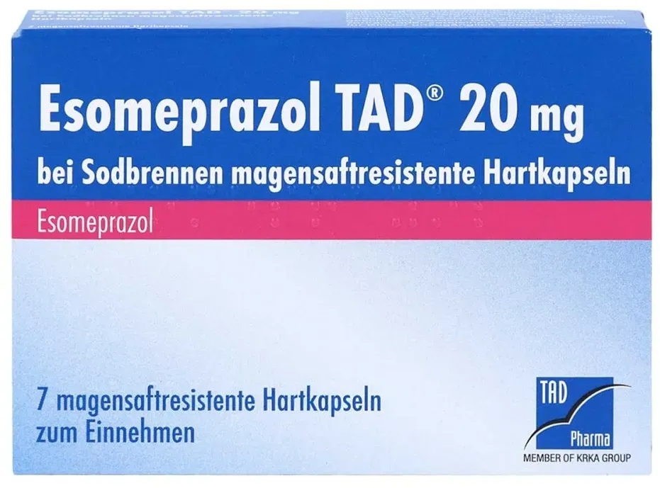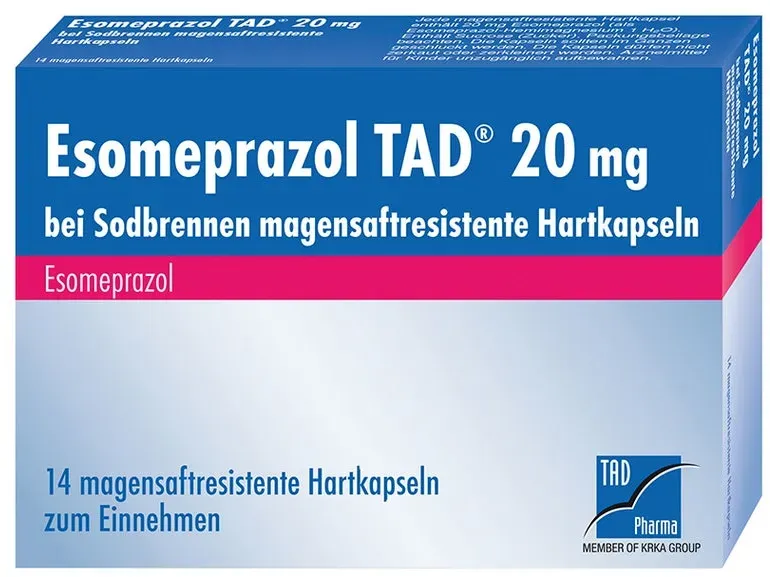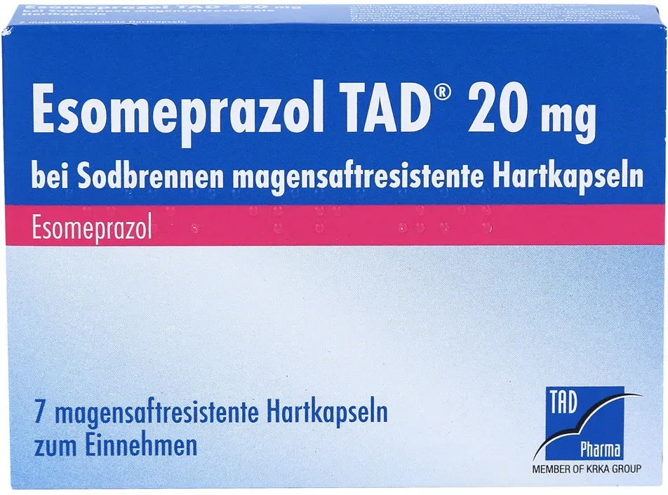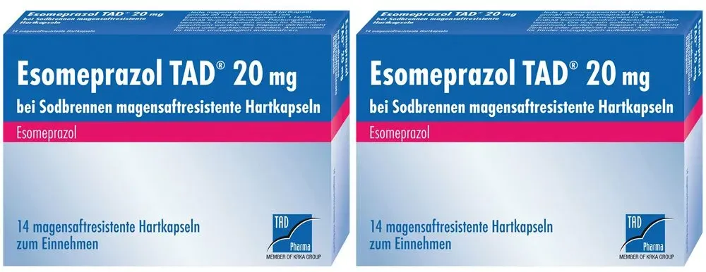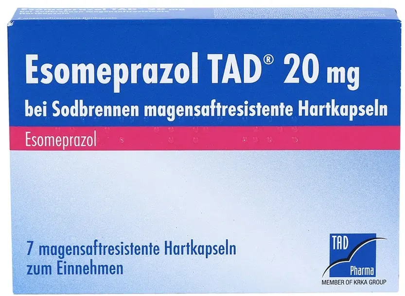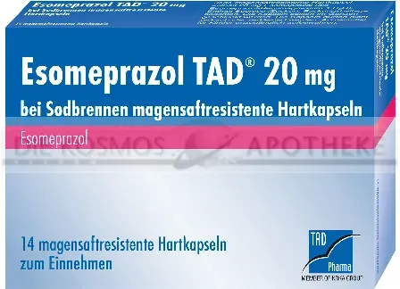 0,41 /St - Kategorie: Arzneimittel - TAD Pharma - GTIN:4150109633893 - PZN:10963389 - Esomeprazol TAD 20 mg 14 St - rezeptfrei - von TAD Pharma GmbH - Magensaftresistente Hartkapseln - 14 St - 5,72 Euro bei DocMorris Apotheke - gefunden von billiger.de Ein weiteres günstiges Angebot für 14 Kapseln, das eine gute Ersparnis ermöglicht. ![]() ![]() TAD Pharma ESOMEPRAZOL TAD 20 mg bei Sodbrennen msr.Hartkaps. 14 St