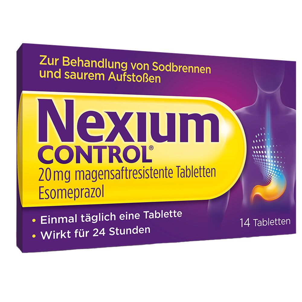 Der angezeigte Preis könnte seit dem letzten Update gestiegen sein - EAN: 4150102519736 - AnwendungsgebieteNexium Control® ist ein rezeptfreies Arzneimittel zur kurzzeitigen Behandlung von Refluxsymptomen (z. B. Sodbrennen und saures Aufstoßen) bei Erwachsenen. Anwendung und DosierungDie empfohlene Dosis beträgt 20 mg Esomeprazol (eine... - Zustand: NEW - bei SHOP APOTHEKE - gefunden von Buycentral Dieses Angebot für Nexium Control ist über Amazon Marketplace erhältlich und bietet Flexibilität beim Kauf. ![]() ![]() NEXIUM Control 20 mg magensaftresistente Tabletten 14 St